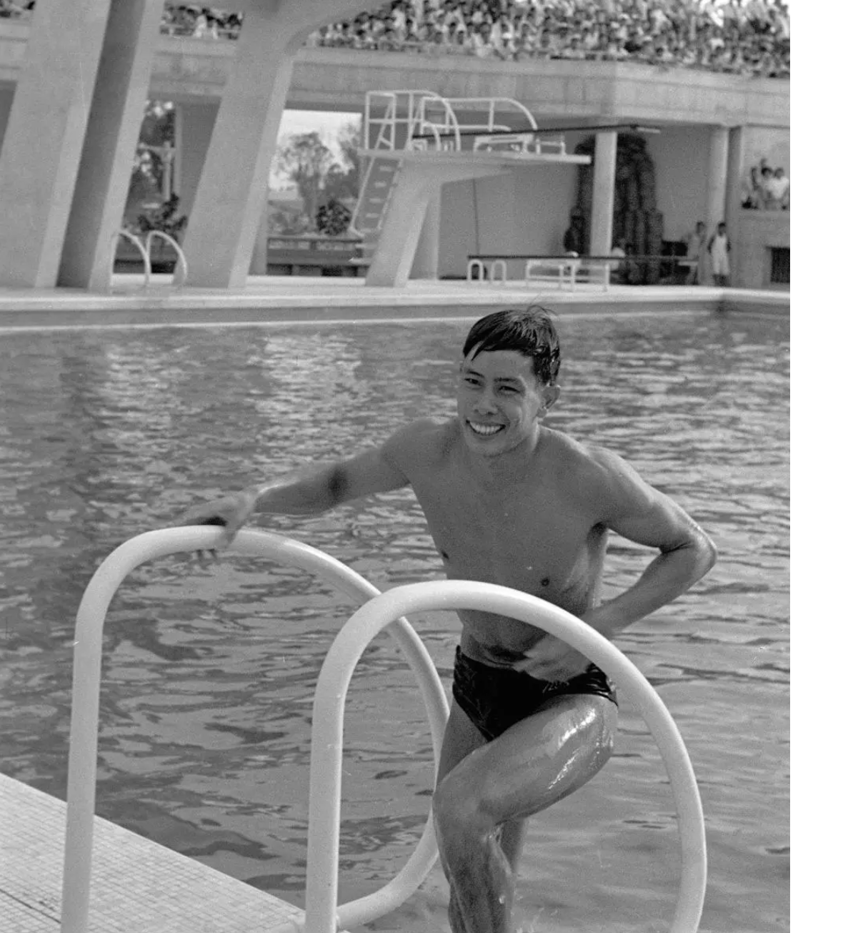 这个体育基地一开始叫做“广州国际体育俱乐部”。据广东省体育局原局长董良田回忆,当时前来集训的还有港澳的运动员,以及苏联、匈牙利等国家的运动员代表。虽然中国最终做出了放弃前往墨尔本参赛的决定,但移交给原广东省体委使用的这个体育基地成为广东体育人的巨大财富。在这里,广东竞技体育的新篇章徐徐展开,成为家喻户晓的“冠军摇篮”。如今当年修建的室外跳水台还作为历史文物保留在基地内,1964年上映的体育故事片《女跳水队员》里的大量场景,就是在这一跳水台拍摄。台下一行红色标语:只争朝夕,不负韶华,至今仍是二沙体育精神的象征。