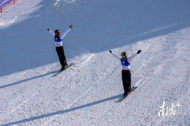 哈尔滨亚冬会自由式滑雪男子空中技巧双人同步决赛赛场。南方+记者 姚志豪 摄