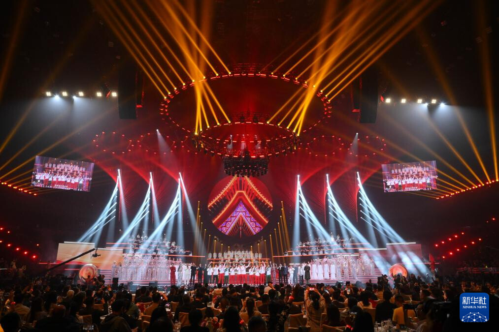 22日晚,“湾区升明月”2024大湾区电影音乐晚会在澳门银河综艺馆唱响。海峡两岸暨港澳地区电影人、音乐人和奥运健儿代表,携手国际知名音乐人,用光影与歌声共绘粤港澳大湾区的金秋盛景。