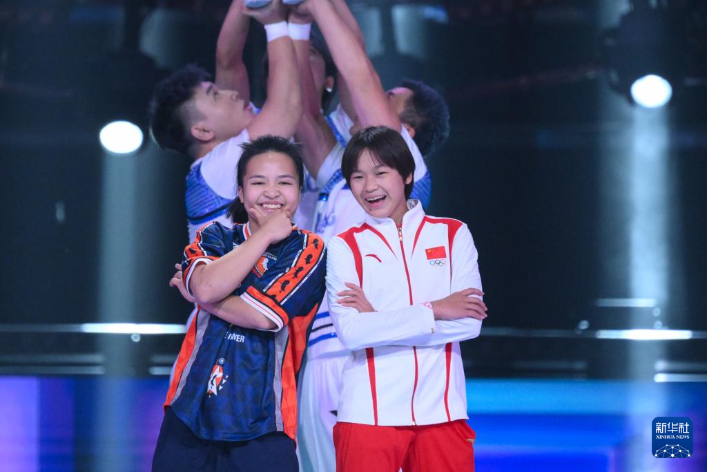 晚会上,多位载誉归来的中国奥运健儿亮相。樊振东、全红婵、冯紫琪以及王柳懿、王芊懿携手港澳运动员代表,向明年即将在粤港澳三地联合主办的第十五届全运会送上祝福。多才多艺的健儿们也一展歌喉。