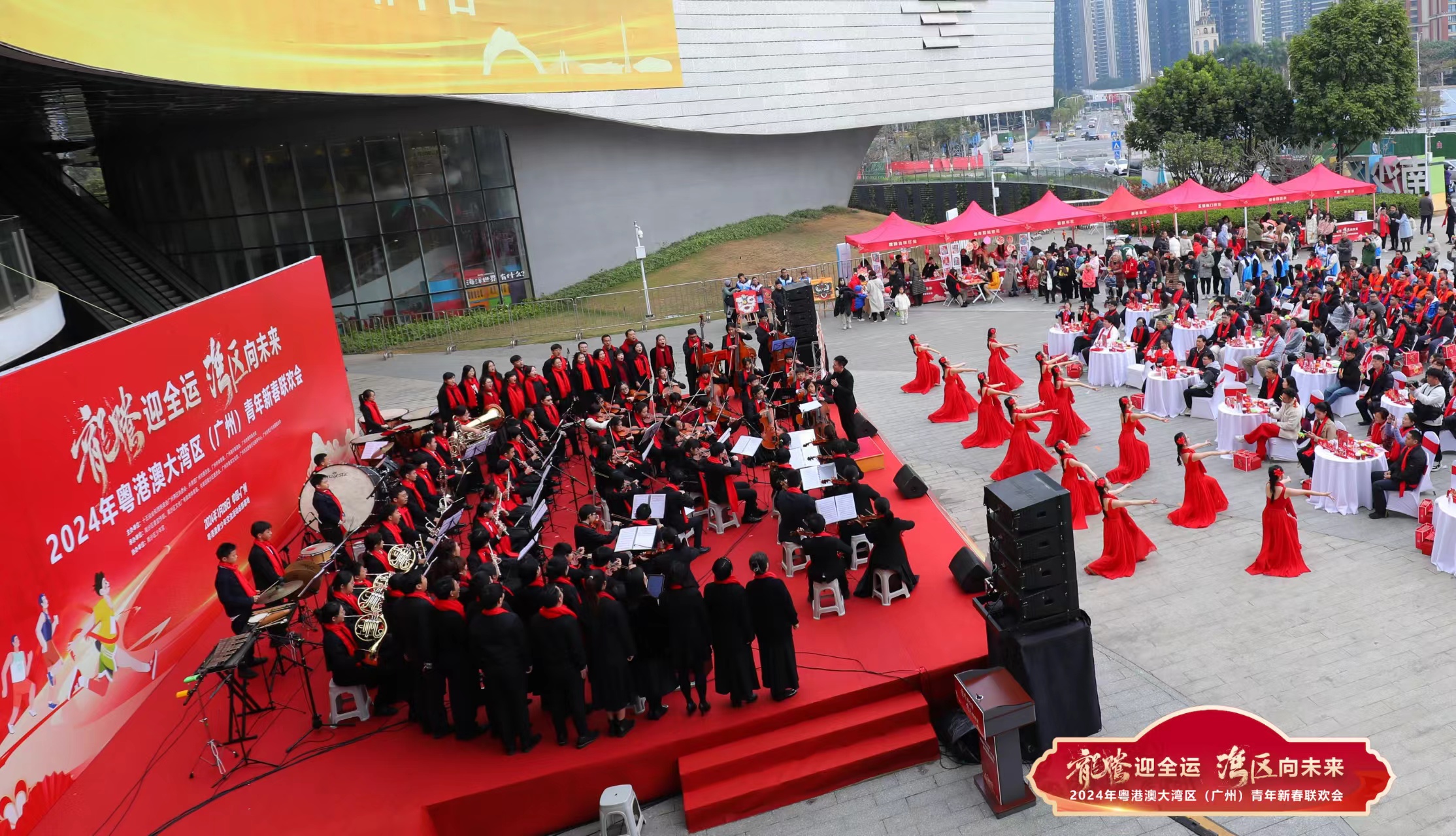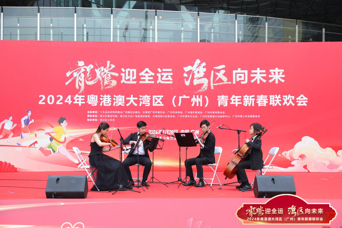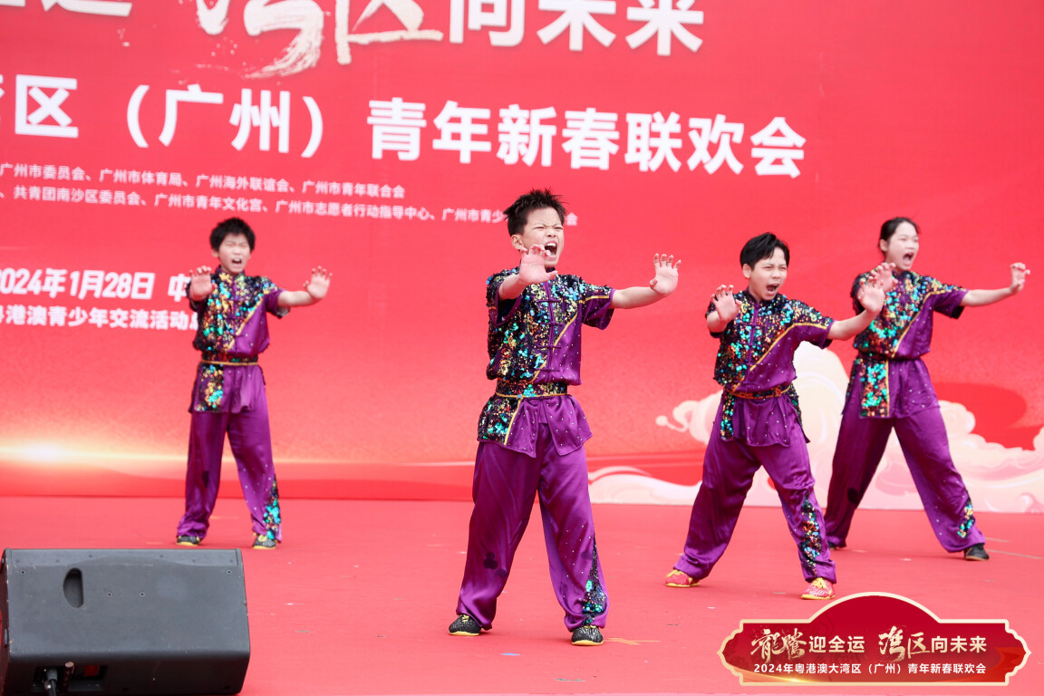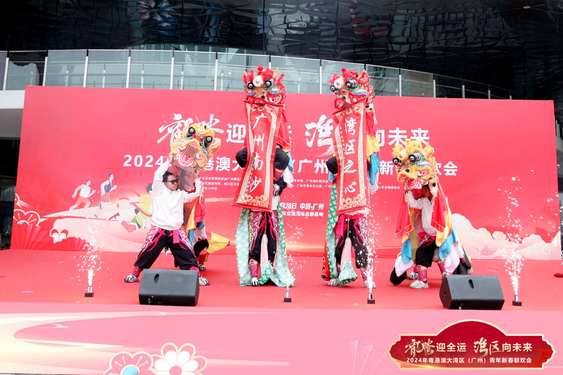 1月28日,“龙腾迎全运湾区向未来”2024年粤港澳大湾区(广州)青年新春联欢会在“湾区之心”广州南沙举行。联欢会上,合唱、舞蹈、管弦乐、武术等文艺展演精彩纷呈,民俗、非遗、写福字等文化摊位热闹非凡,粤港澳三地300多名青年聚首湾心,欢度新春,喜迎全运,聚起浓浓“烟火气”,凝结满满“团圆情”。