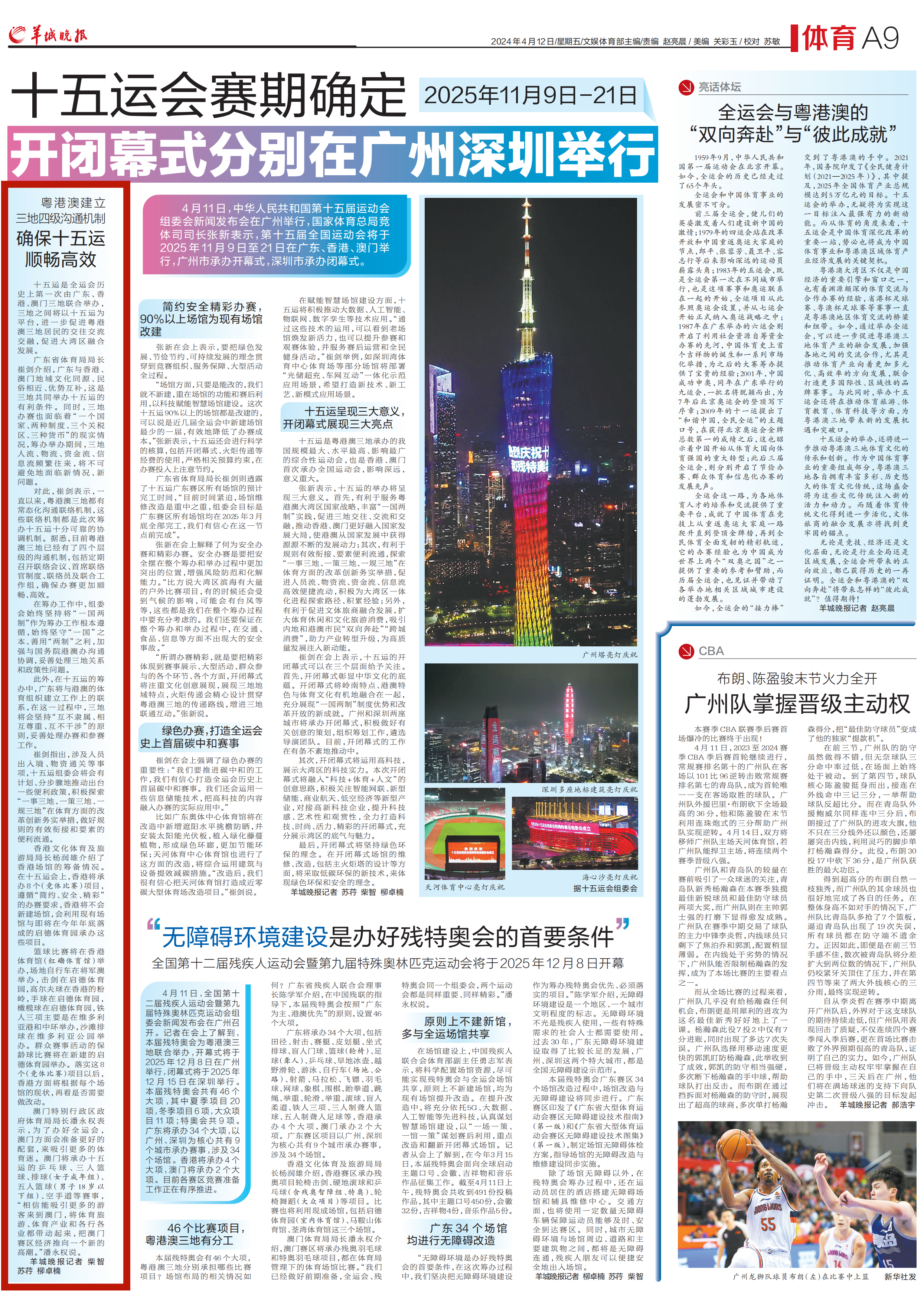 此外,在十五运的筹办中,广东将与港澳的体育组织建立工作上的联系,在这一过程中,三地将会坚持“互不隶属、相互尊重、互不干涉”的原则,妥善处理办赛和参赛工作。