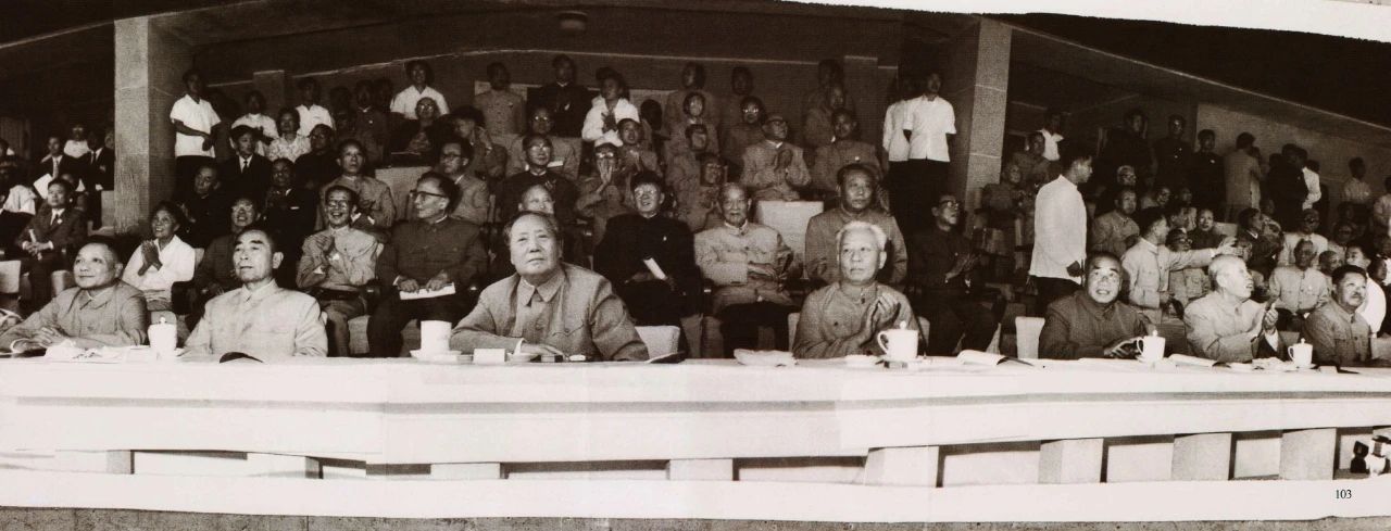 毛泽东、刘少奇、周恩来、邓小平、朱德、董必武、贺龙等党和国家领导人参加第二届全国运动会开幕式