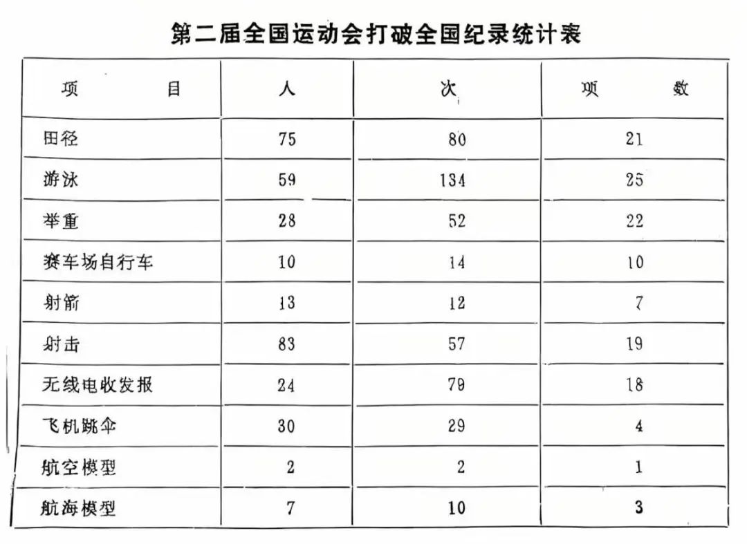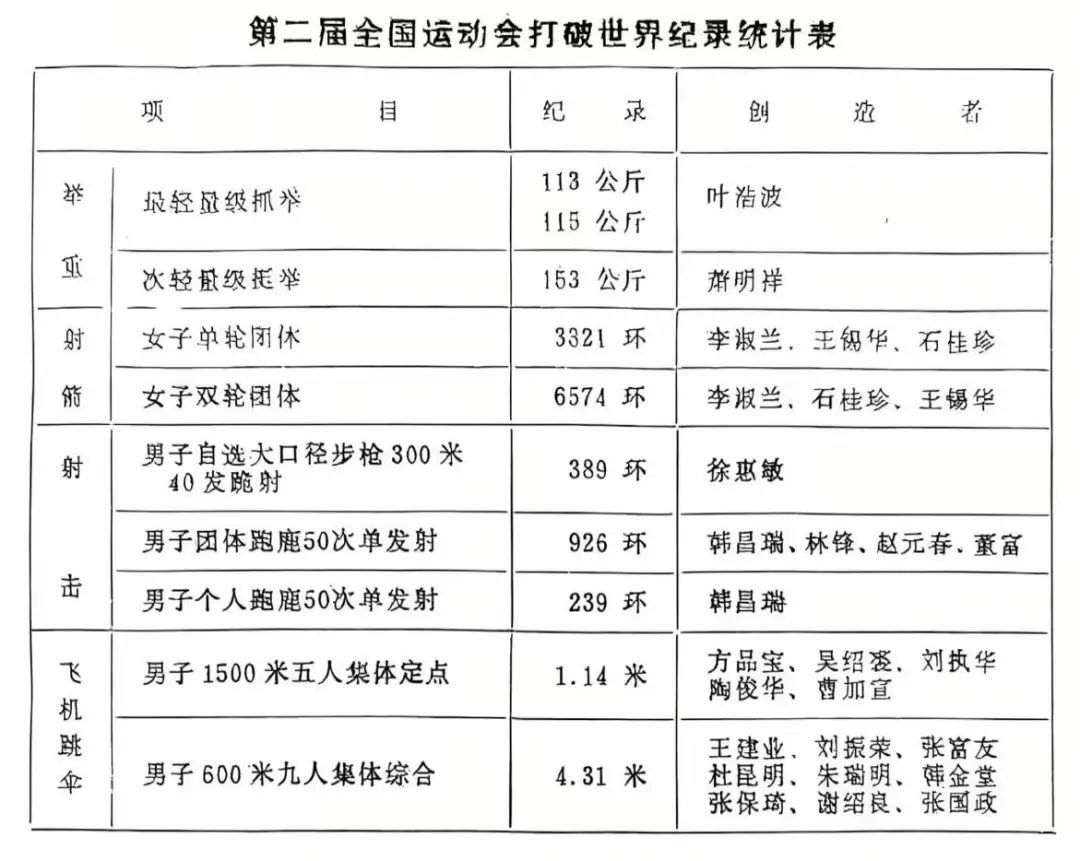 第二届全国运动会打破世界纪录统计表