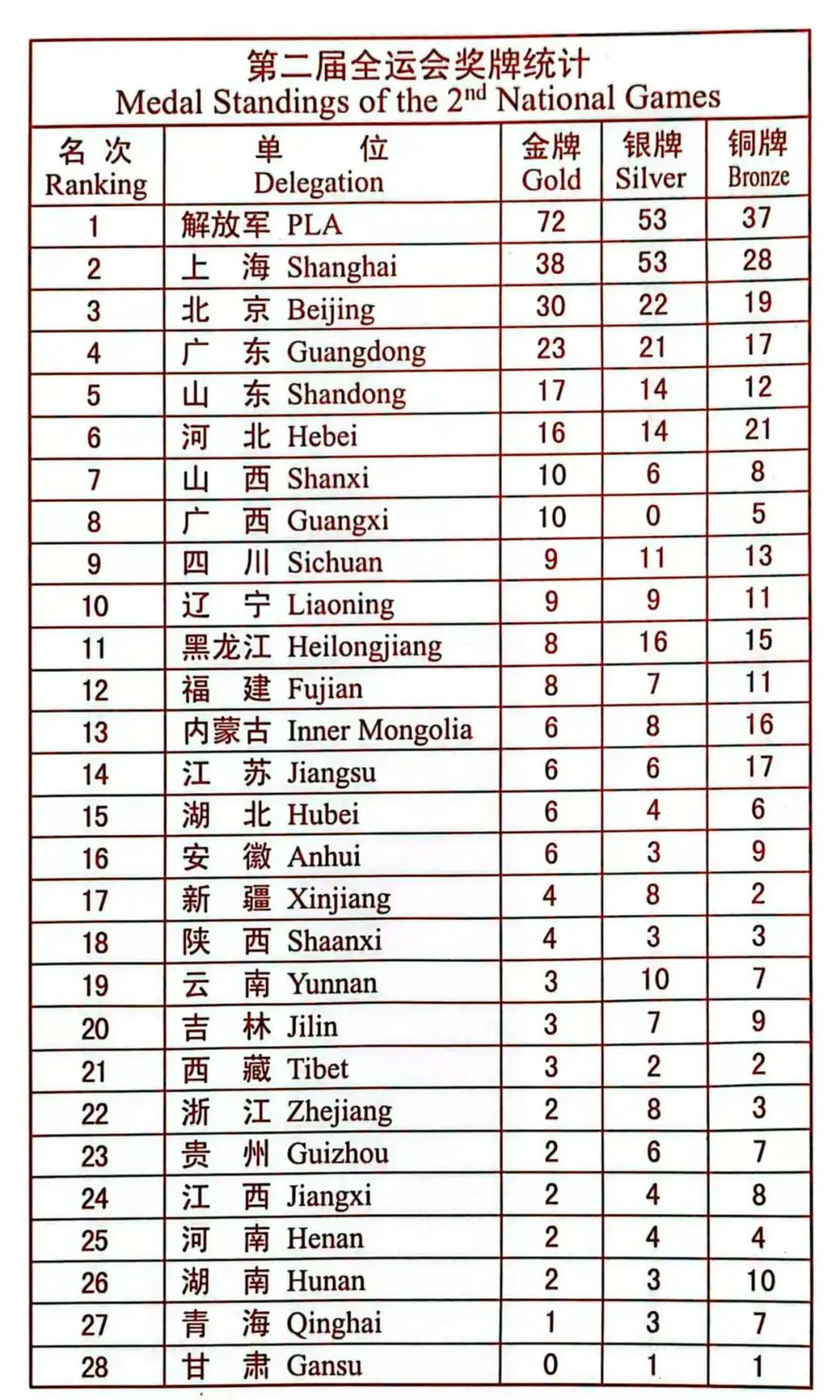 第二届全国运动会成绩统计