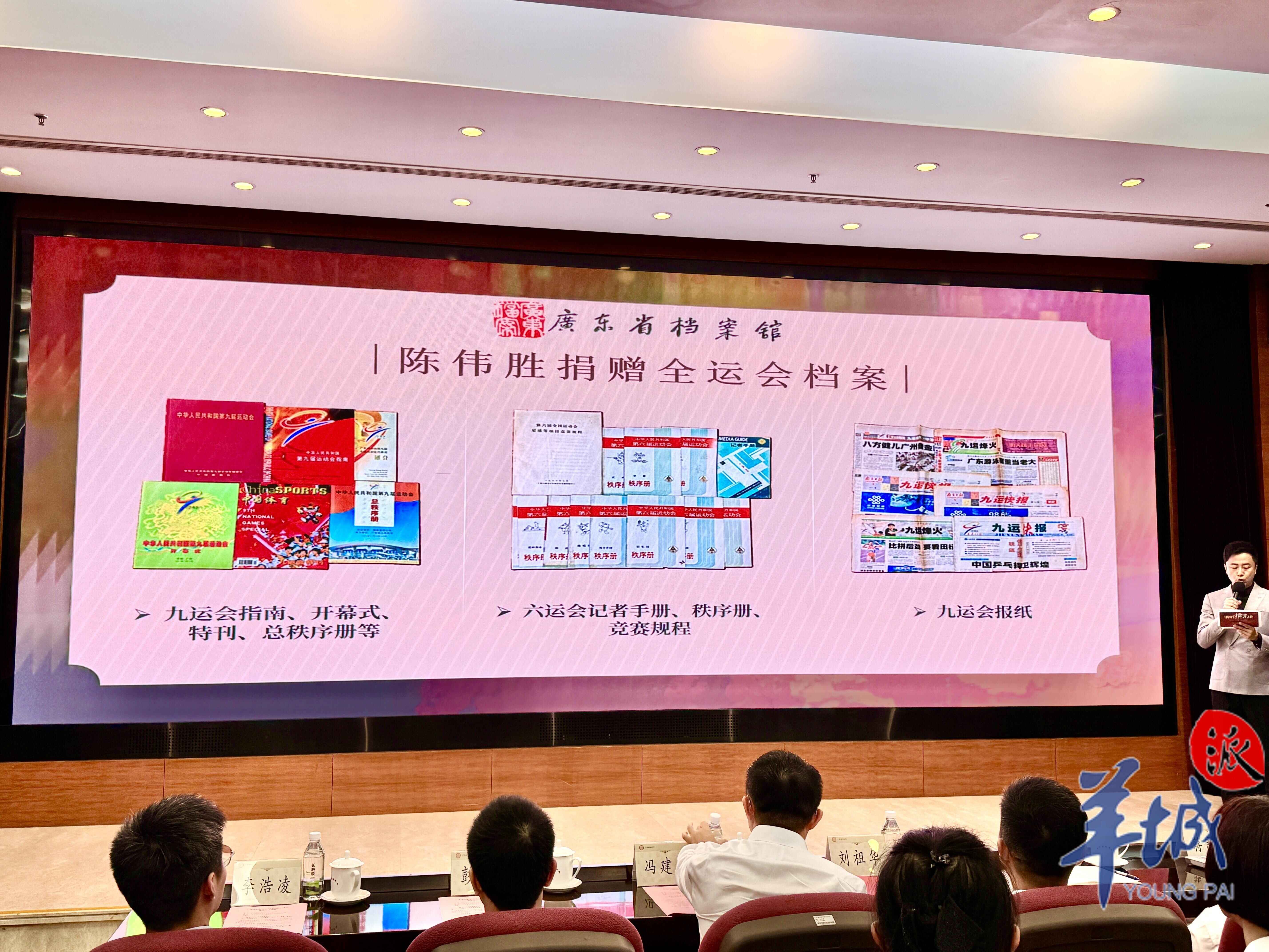 6月9日,在第18个国际档案日到来之际,广东省档案馆举办全运会档案捐赠仪式,接收了一批珍贵的全运会历史档案。十五运会和残特奥会会徽及吉祥物设计团队负责人、广州美术学院视觉艺术设计学院副院长刘平云;国际体育及大赛媒体专家、体育文化学者陈伟胜成为此次捐赠的主角。