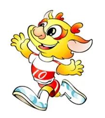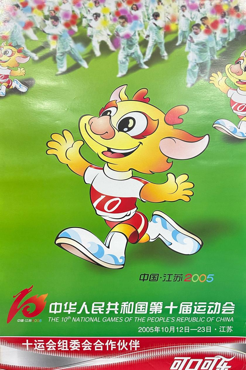 中华人民共和国第十届运动会吉祥物揭晓仪式暨“江苏电信杯”2004年江苏省全民健身运动会开幕式在南京五台山体育馆隆重举行。十运会吉祥物以中华民族吉祥的灵物——麒麟形象为基调,取名“金麟”。设计者为上海大学美术学院刚毕业的大学生方芳。
