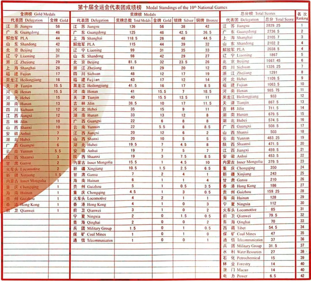 第十届全国运动会成绩统计