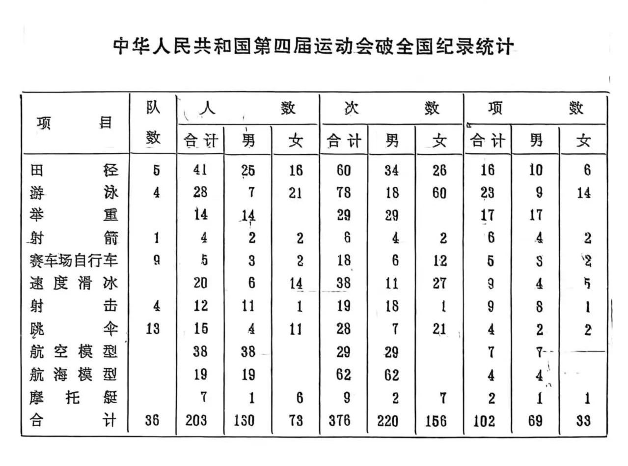 第四届全国运动会破全国纪录统计表
