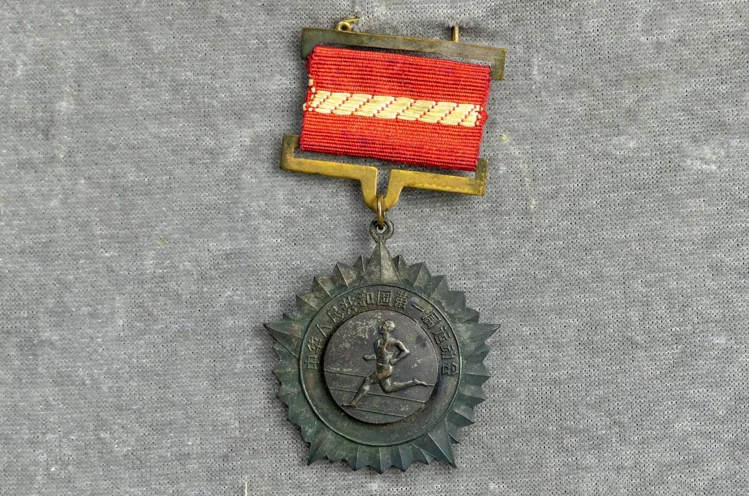 在1959年第一届全运会中,击剑被列为表演赛项目,但按照正式的比赛规则进行,依据个人比赛成绩计算团体总分排名。这枚奖牌见证了新中国成立初期,击剑运动在我国的普及和发展,也是运动员荣誉的象征,承载着第一届全运会的珍贵记忆。