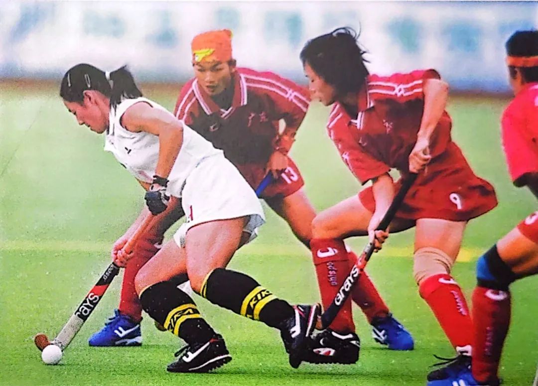 女子曲棍球比赛,广东(红衣)获冠军,吉林获亚军。