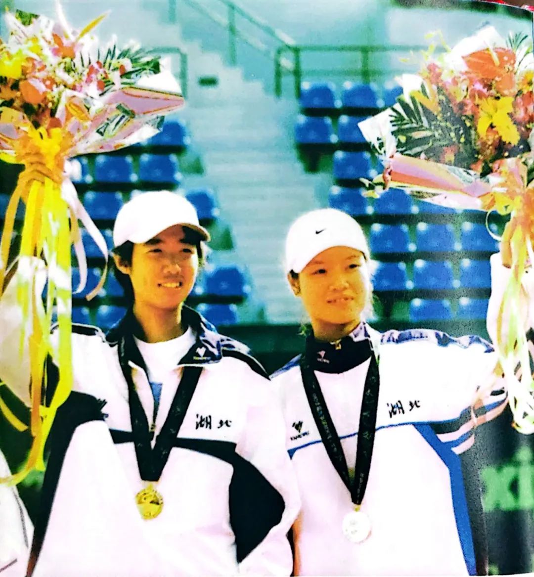 湖北选手李婷(左)、李娜获得女子网球双打冠军。