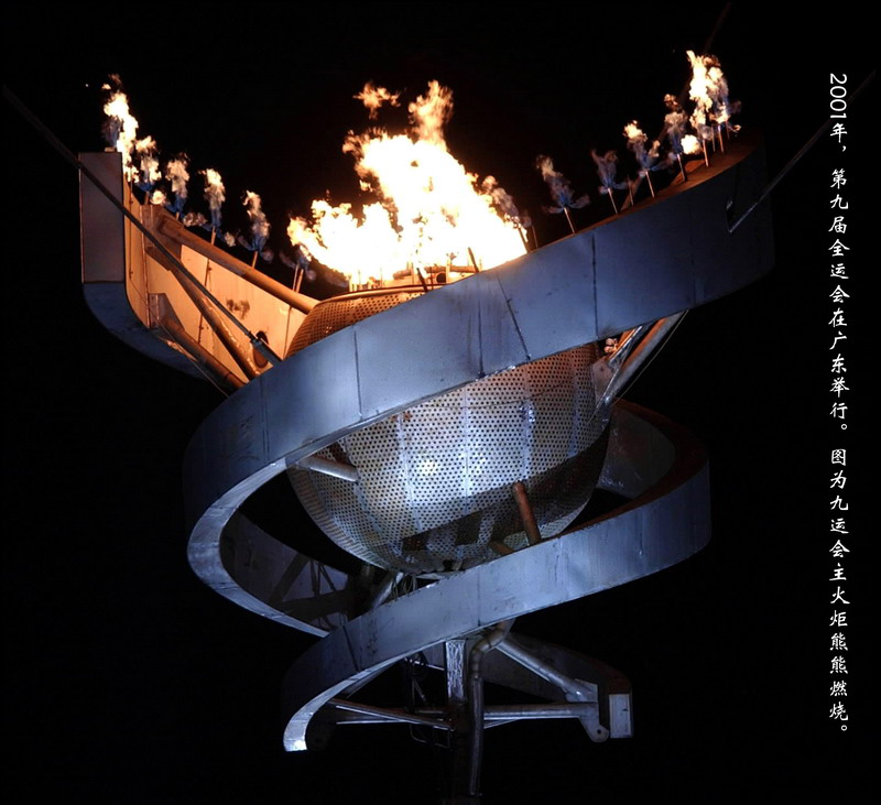 第9届全运会“走进新时代”别克杯火炬传递活动圣火汇集仪式在广东奥林匹克中心北广场举行,标志着全国历时52天的火炬传递活动降下帷幕。国家体育总局、广东省的有关领导及全国各地的火炬手、广州各界代表2000多人参加了仪式。各省 (区、市)及香港、澳门的火炬汇集点燃了圣火坛的火种盘。与历届全运会相比,本次火炬传递活动创下了三个之“最”:传递范围最广,参与人数最多,科技含量最高。