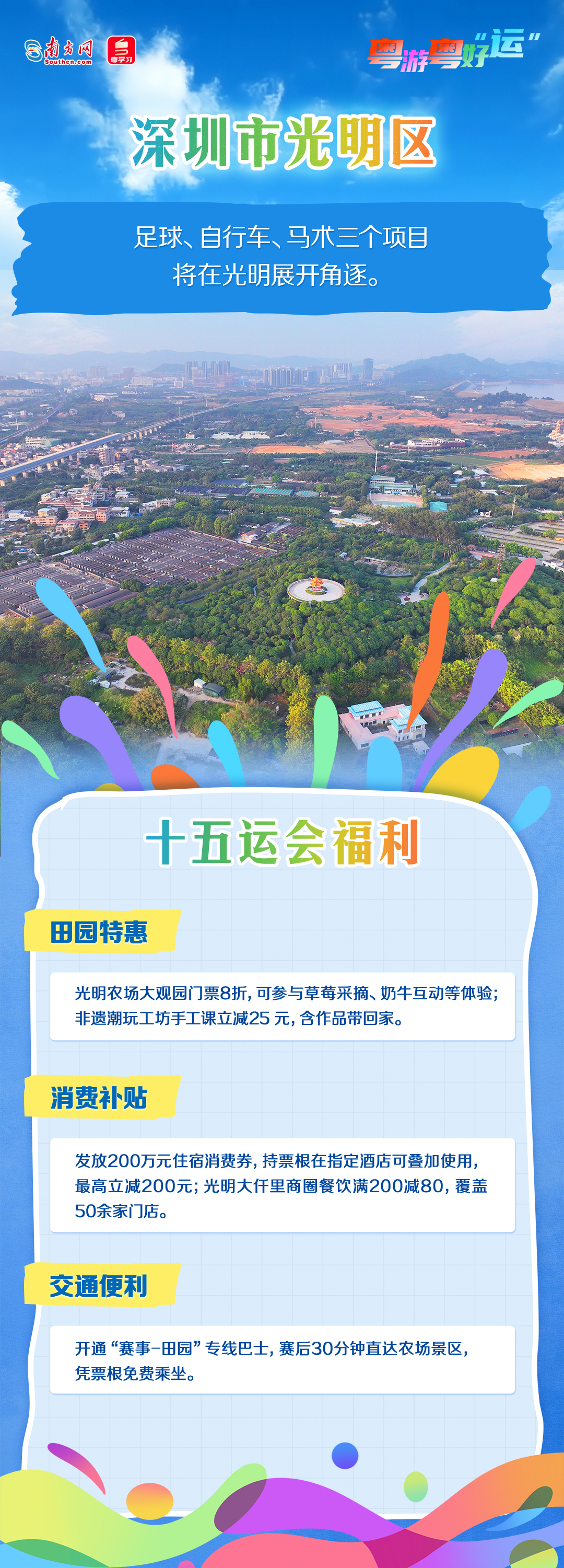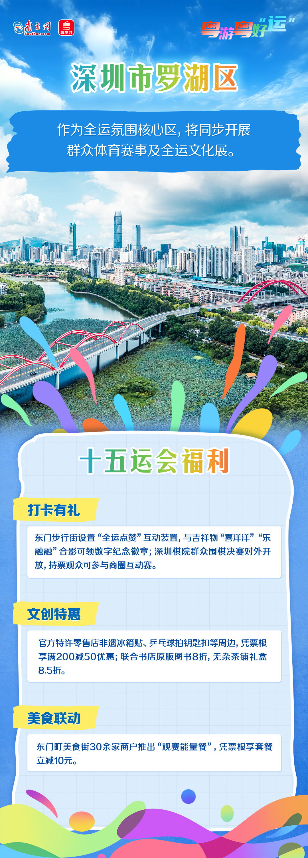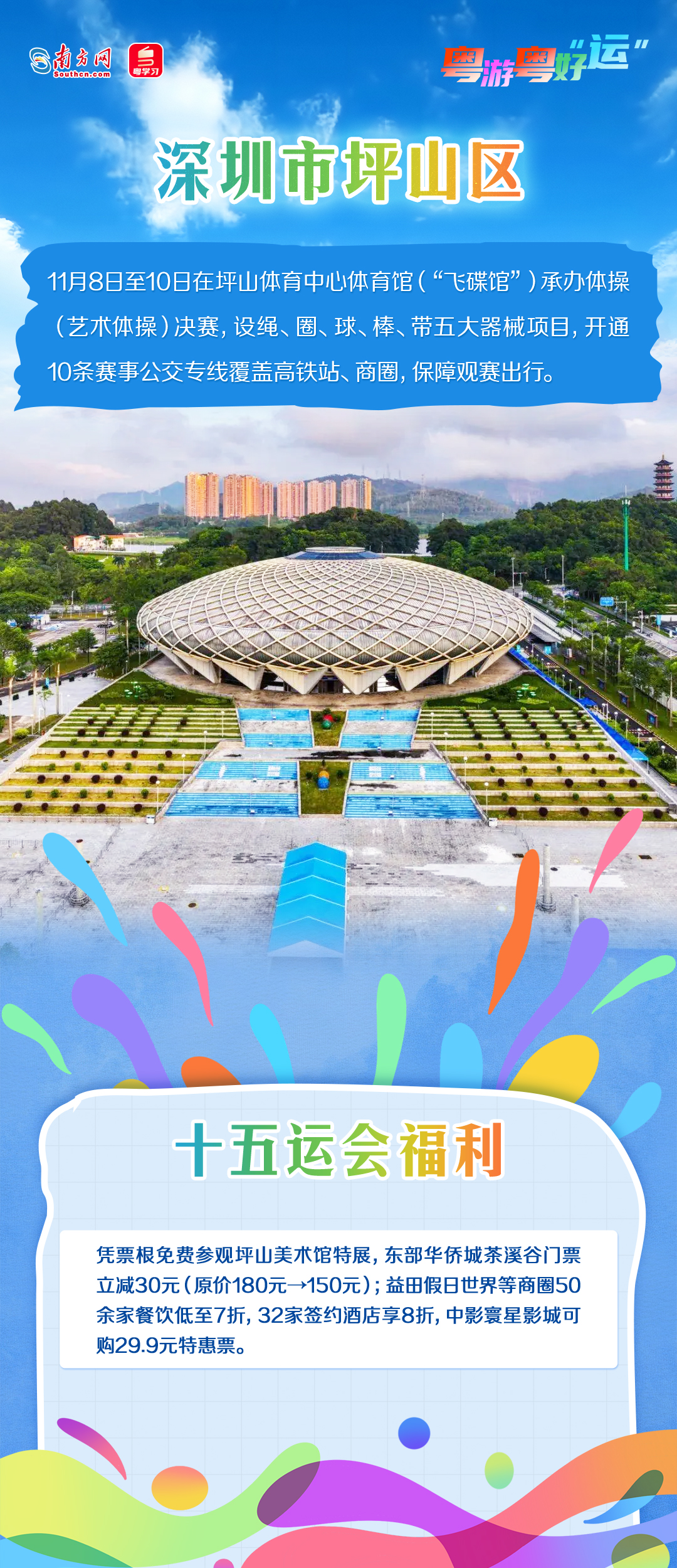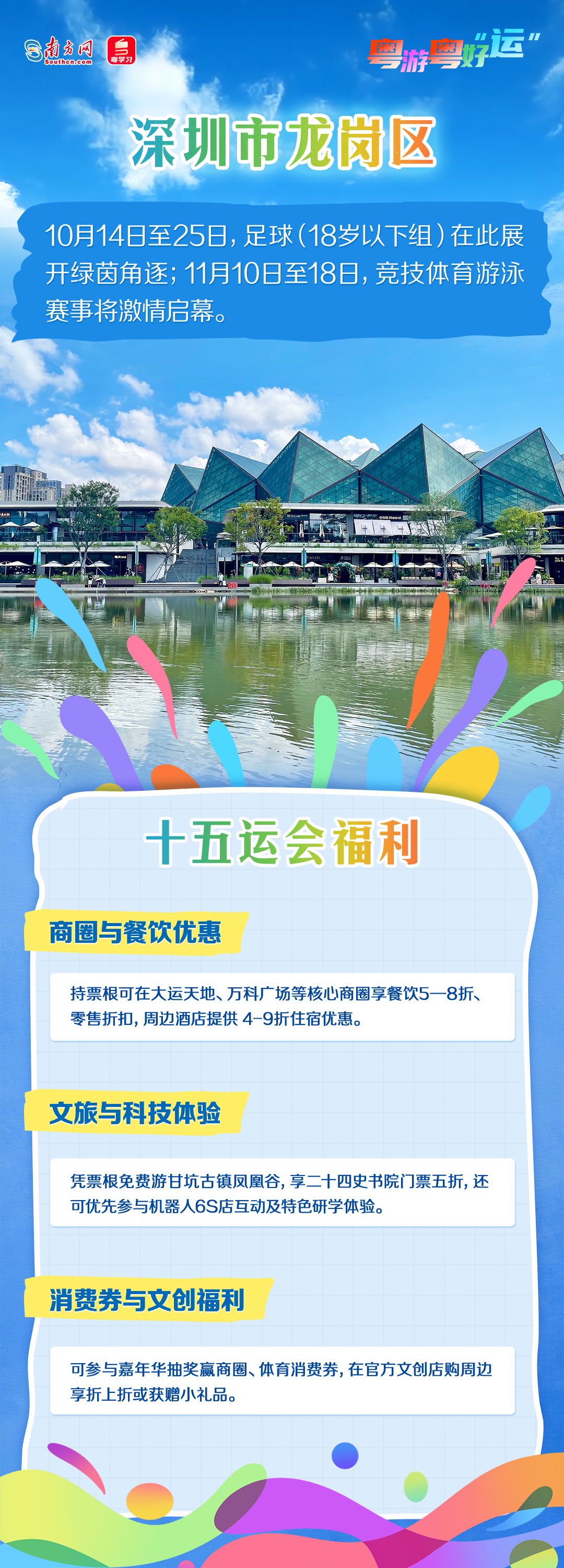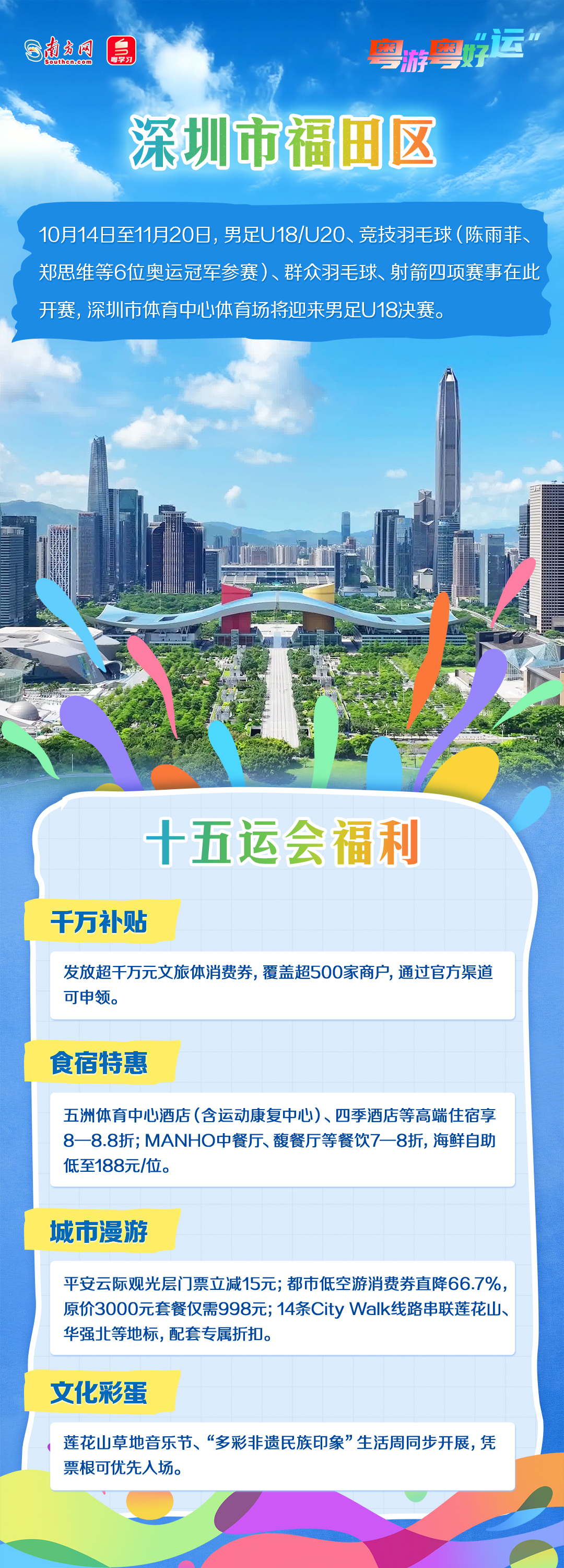 今年11月,第十五届全国运动会将举行。深圳各区以赛事为契机,推出多项文体旅融合活动,让观众在观赛之余,也能深度感受深圳的活力与魅力。