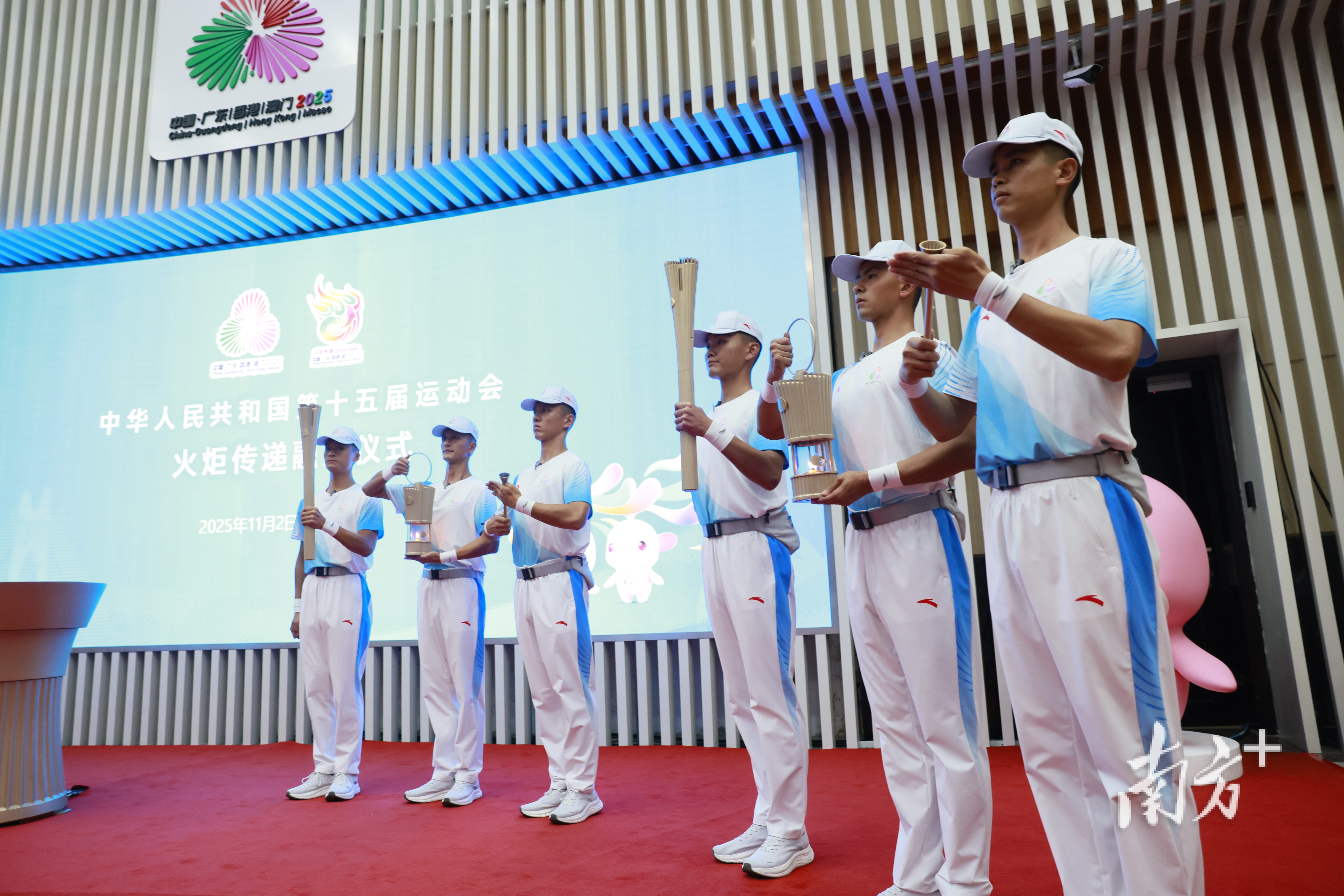 11月2日下午5点,第十五届全国运动会火炬传递融火仪式在广东奥林匹克体育中心省执委会办公楼一楼大堂举行。
