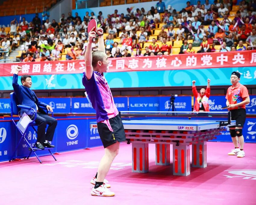 2017年第十三届全运会群众项目乒乓球比赛现场。