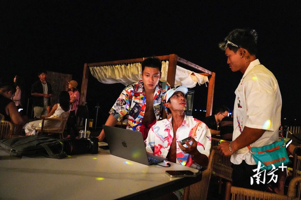 10月18日晚上,冲完浪的年轻人,不忘谈论工作。