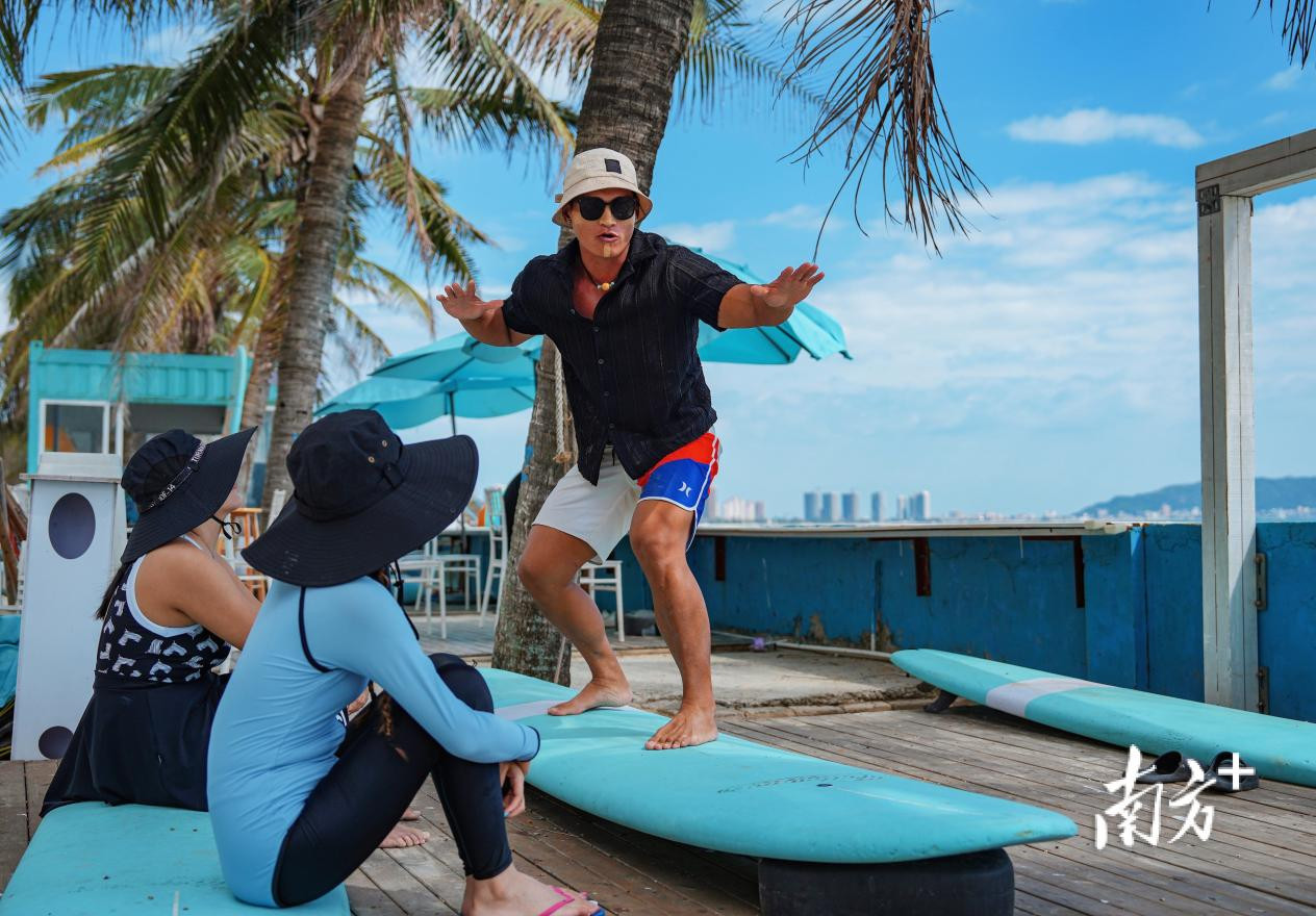 持续从事冲浪教学,他清晰地感受到这项运动的升温,“我每年带的学生数量都在递增。最开始我可能一天只接待一个学生,到最近几年,一位教练一天要上四五节课。”