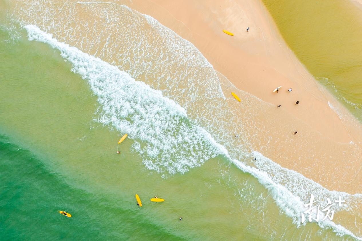 10月19日,惠州狮子岛,周末前来冲浪的人们。
