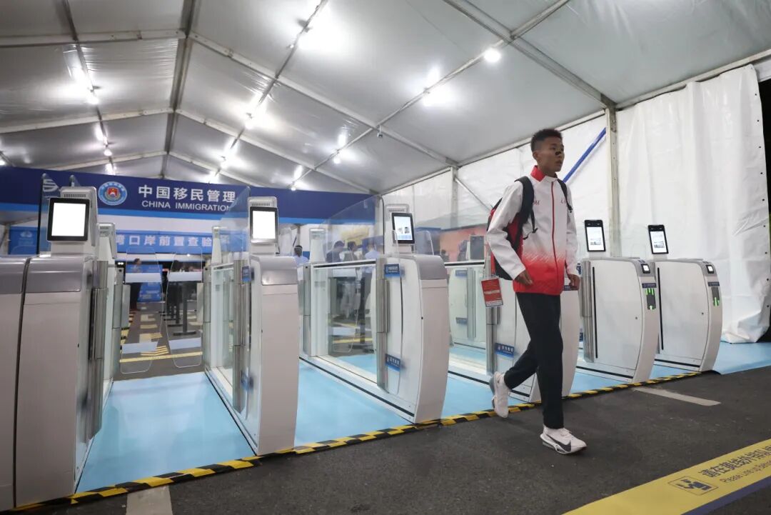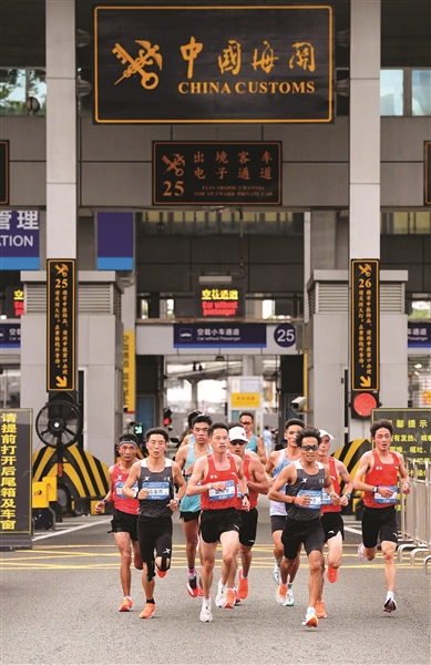 此次全运会历史上首次跨境马拉松赛,最大的亮点莫过于在深圳与香港间的通关口岸,创新采用“前置查验+闭环管理”的查验模式。前置查验简单来说,就是边检总站把口岸搬到了赛场边。在赛道起终点区域克服多项技术难题,设置临时查验区,所有赛事相关人员及车辆在赛前完成通关查验。“我们在此次竞赛中深度使用的生物识别技术,其实在日常通关中也有使用。像我们深圳湾口岸率先启用的智能快捷通道,也就是刷脸通关,现在深圳市其他口岸也有推广,极大便利了百姓平常的出入境。”深圳边检总站深圳湾边检站政治处副主任黄钊说,现在的深圳湾口岸已进入“读秒通关”时代。此番深港两城协同合作,实现人员、车辆、物资“零延时、零接触、零等待”的无感智慧通关。