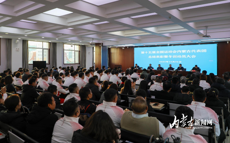 12月25日上午,第十五届全国运动会内蒙古代表团总结表彰暨冬训动员大会在呼和浩特市举行。