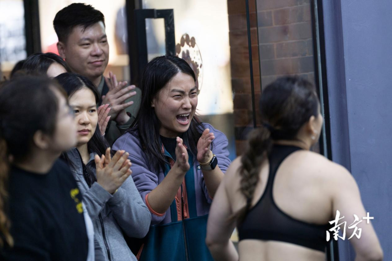 在内部赛事现场看到朋友破纪录后,举重爱好者可馨忍不住鼓掌欢呼。