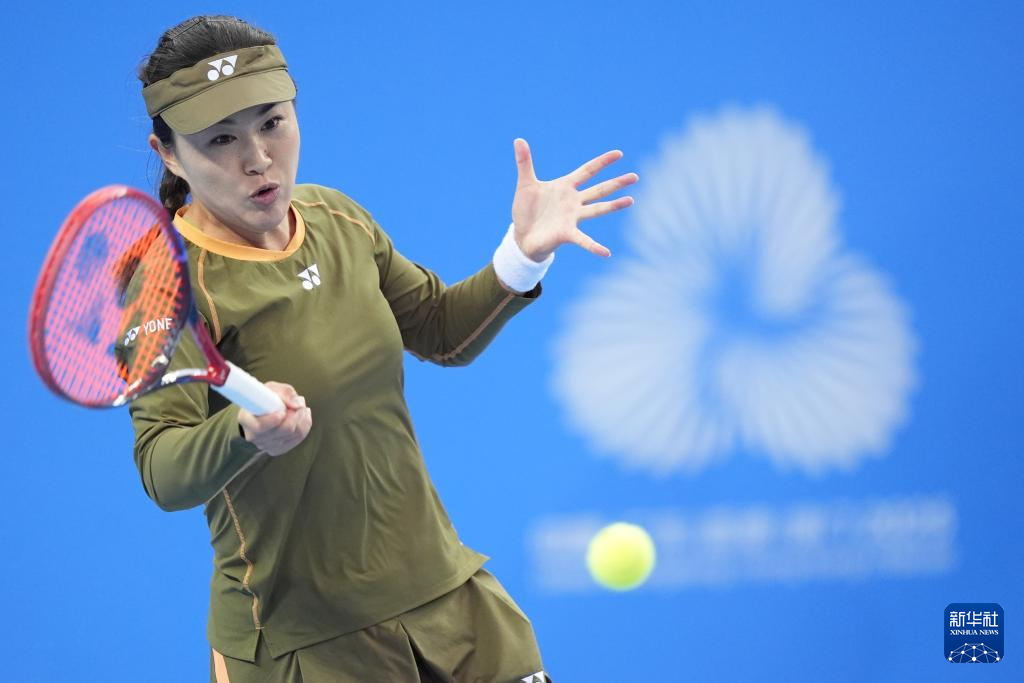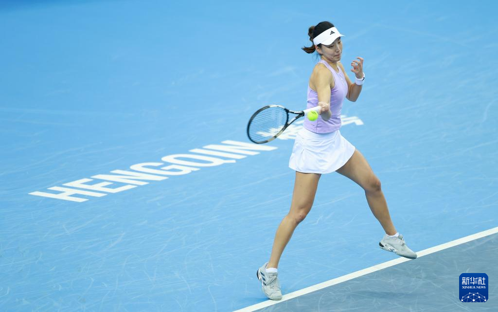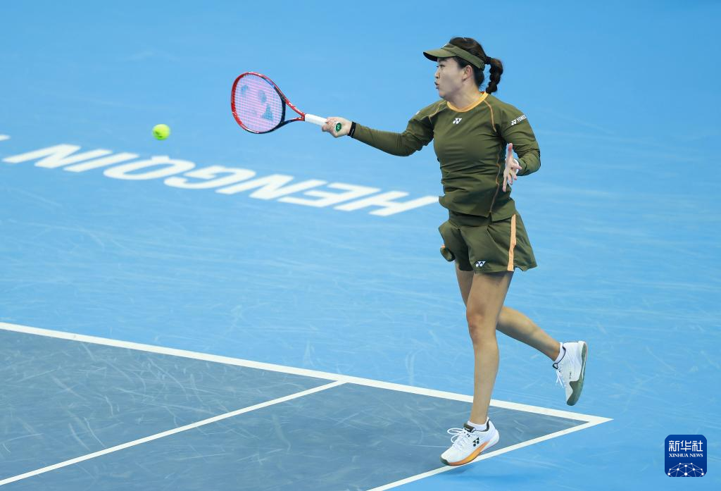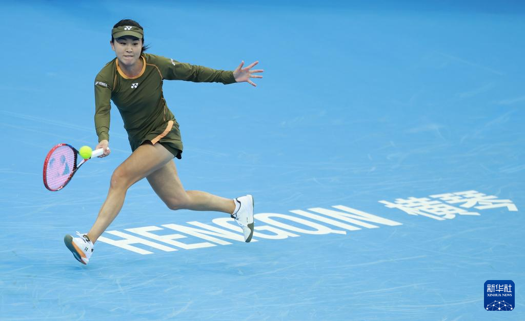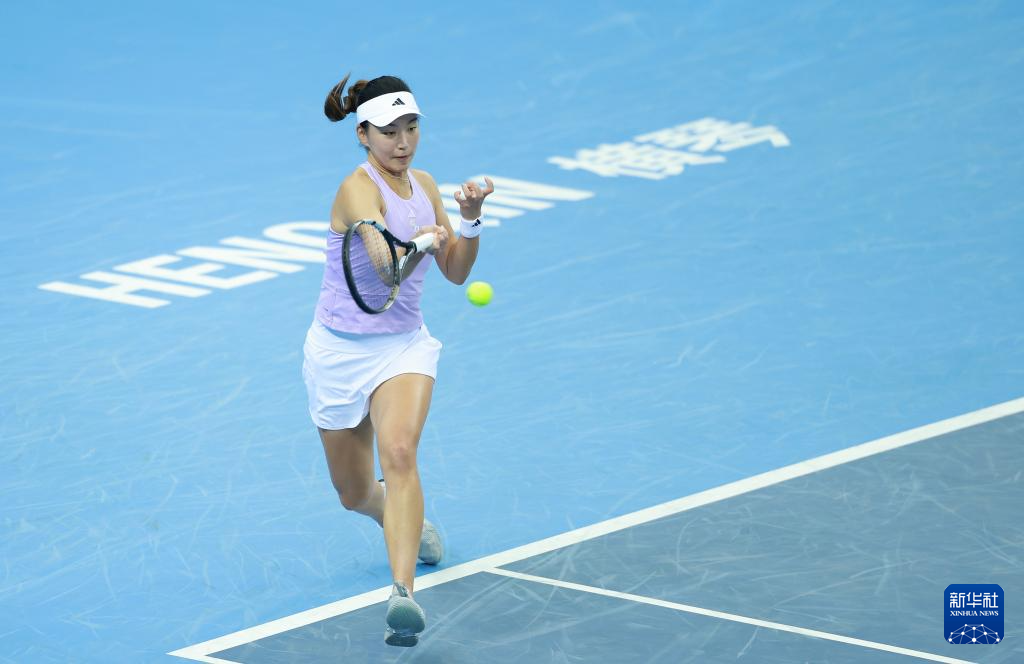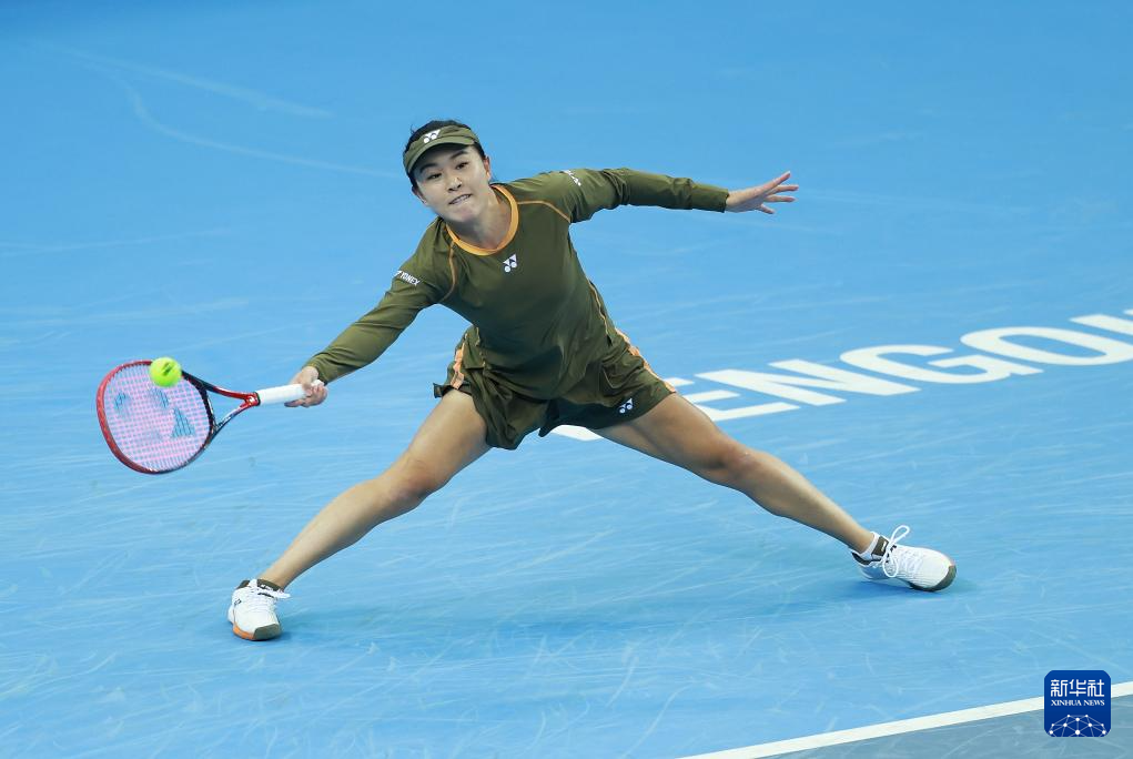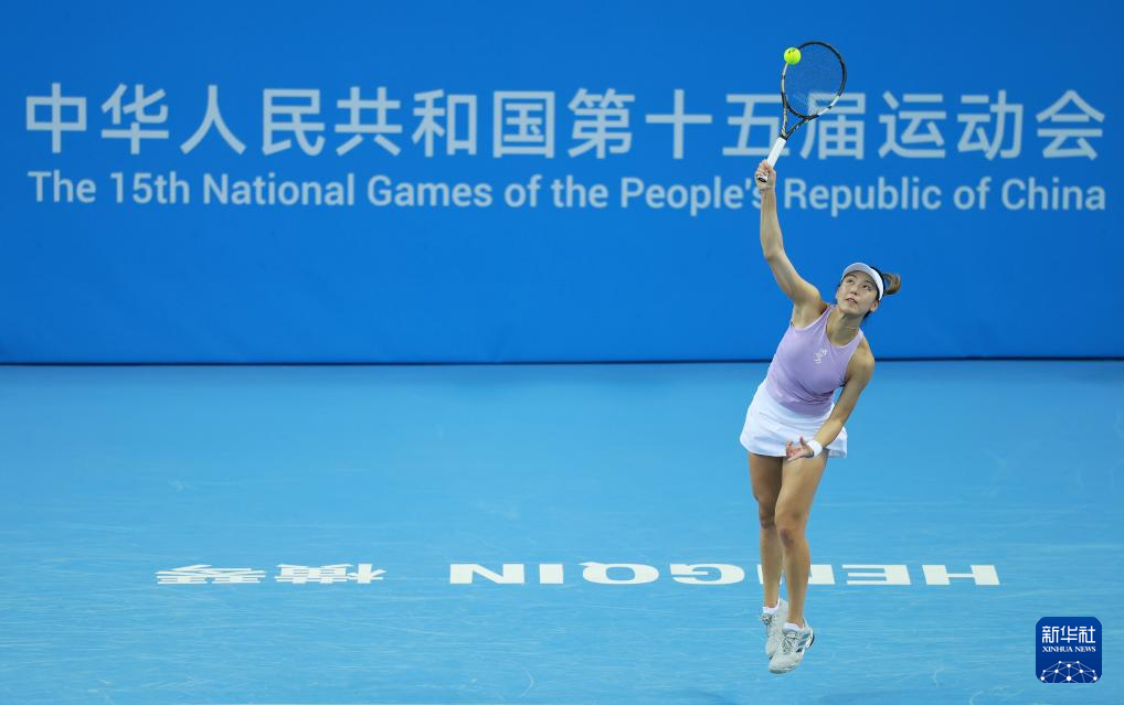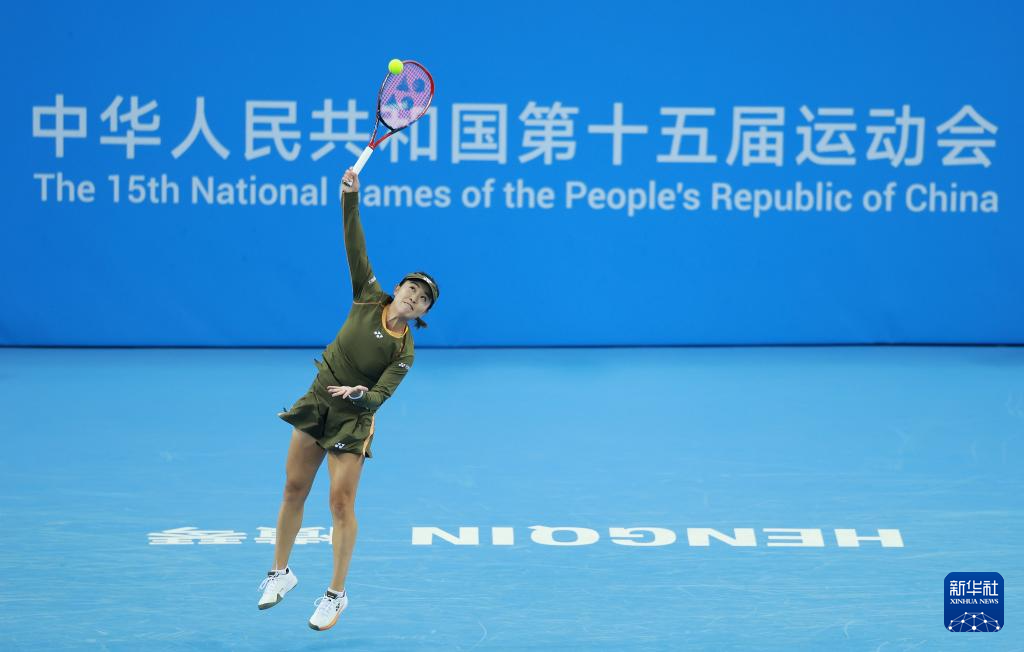 11月19日,第十五届全国运动会网球项目女子单打半决赛在广东横琴举行,广东队选手王欣瑜对阵安徽队选手朱琳。