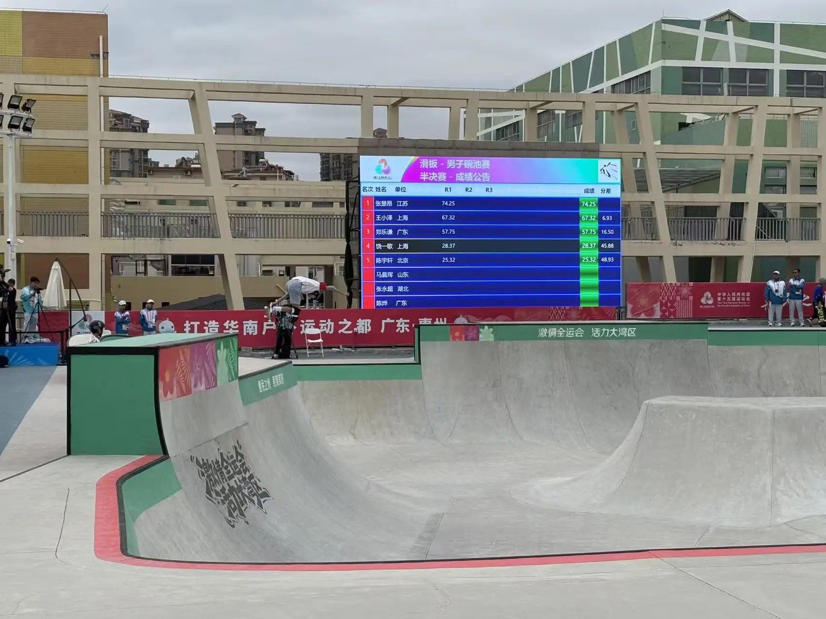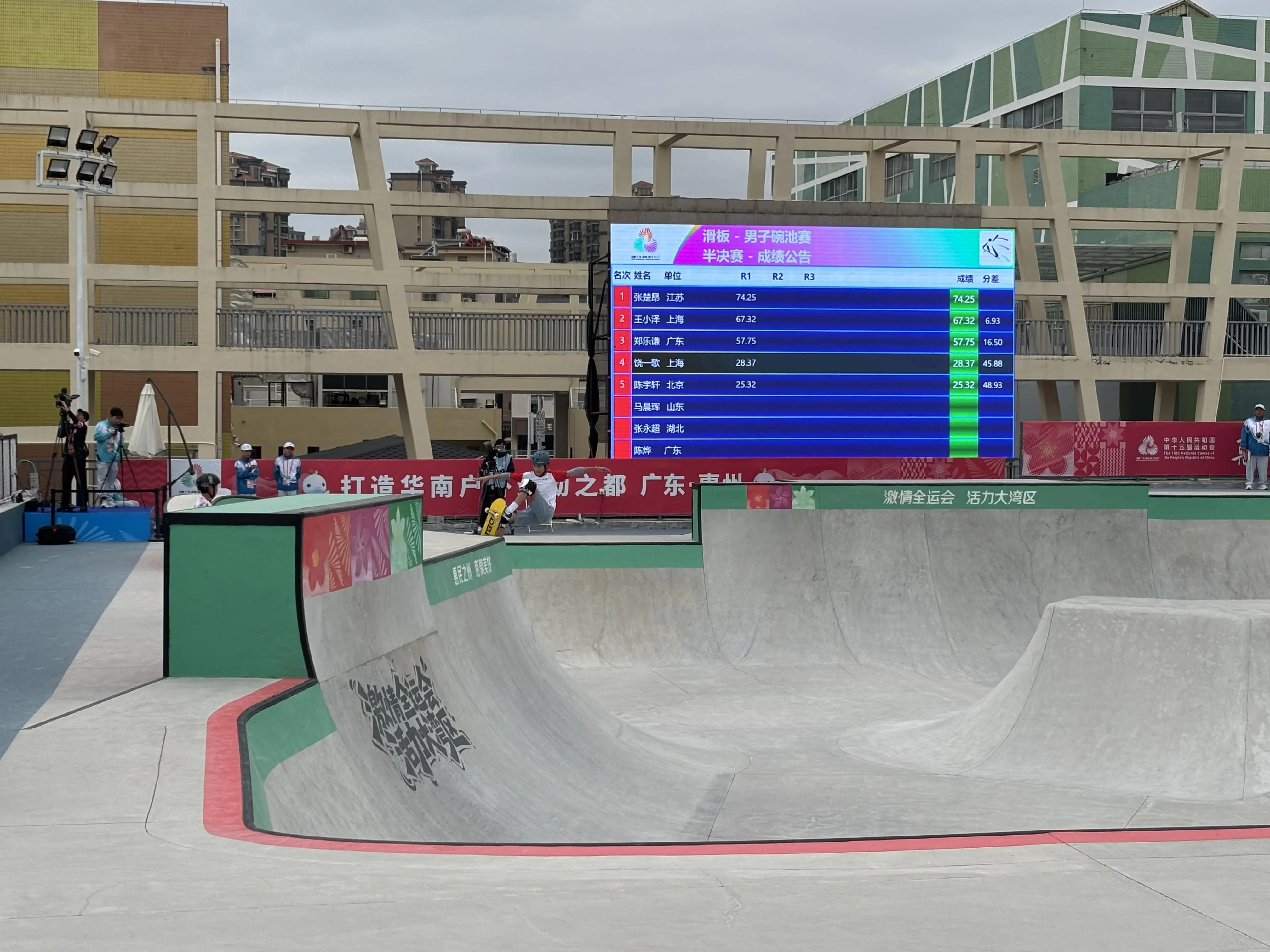11月10日,十五运会开幕式次日,滑板项目在惠州开赛。据悉,本次赛事为期两天,共设男子碗池、女子碗池、男子街式、女子街式四个小项,共有来自全国17个省、自治区、直辖市的17支代表队、60名运动员参赛,其中11月10日进行碗池和街式项目半决赛,11月11日进行各项目决赛。