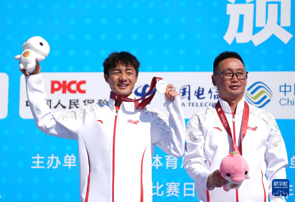 11月15日,亚军云南队选手高鹏(左)和教练员在颁奖仪式上。江汉 摄