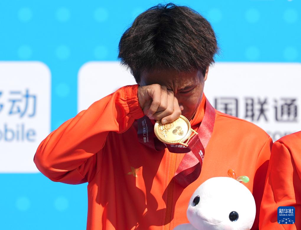 11月15日,冠军宁夏队选手何杰在颁奖仪式上。江汉 摄