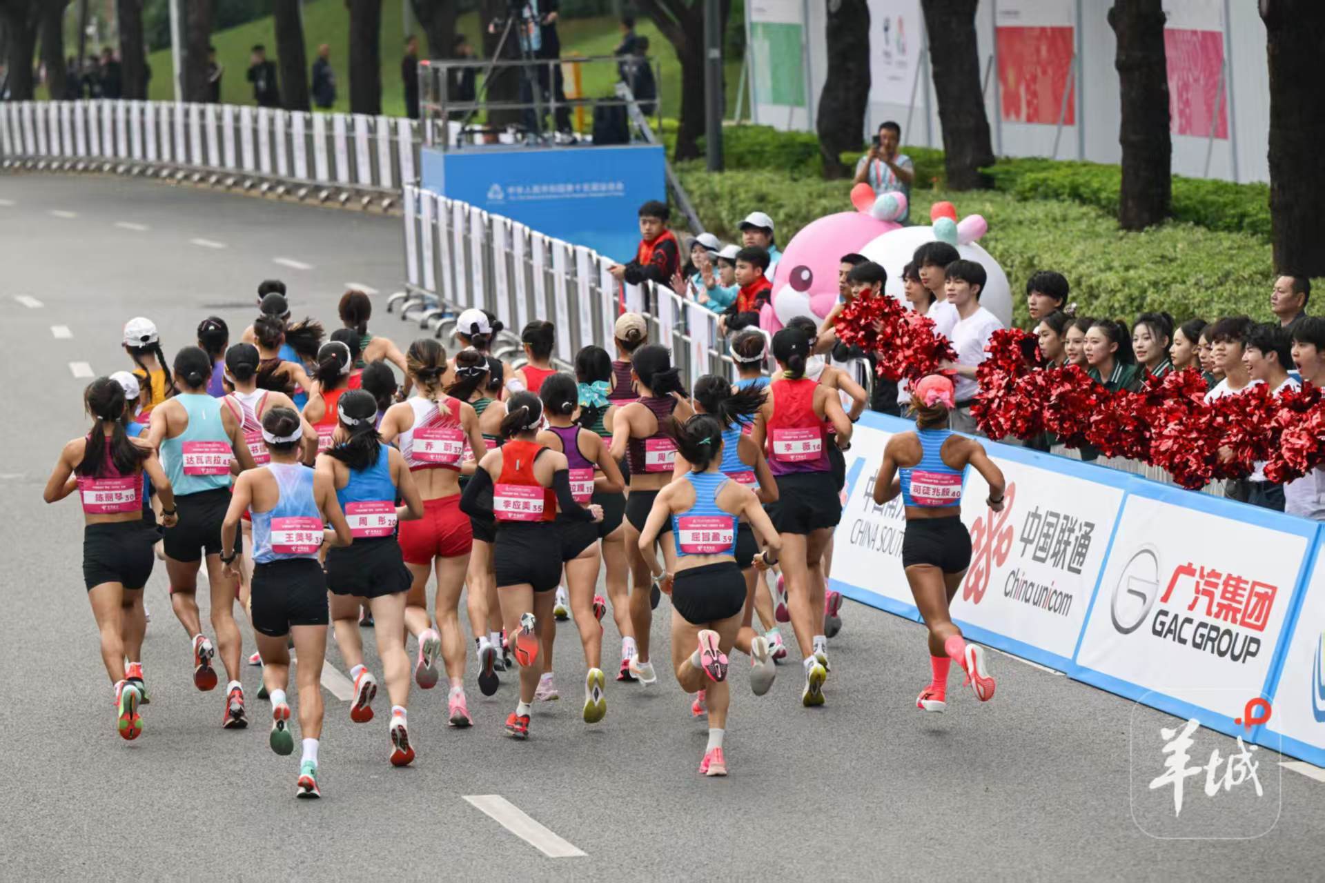 11月15日,十五运会田径(马拉松)项目开赛,女子马拉松开跑。羊城晚报记者 钟振彬 摄