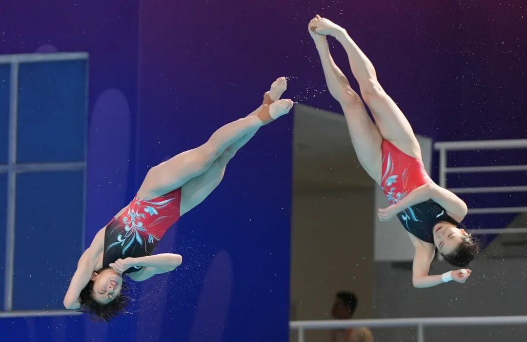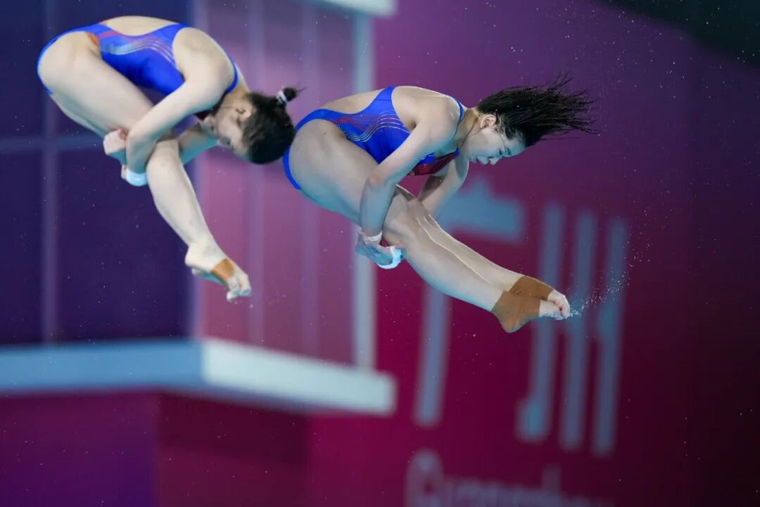 11月2日,广东队组合全红婵/王伟莹在女子团体赛双人10米跳台项目比赛中。最终,广东队夺得冠军。