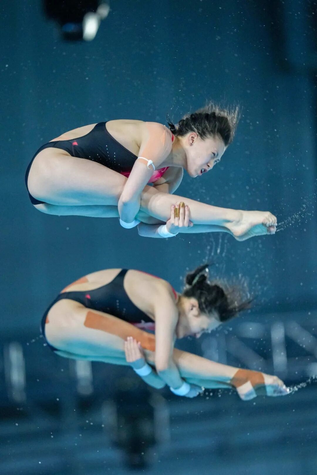 11月2日,广东队组合全红婵/王伟莹在女子团体赛双人10米跳台项目比赛中。