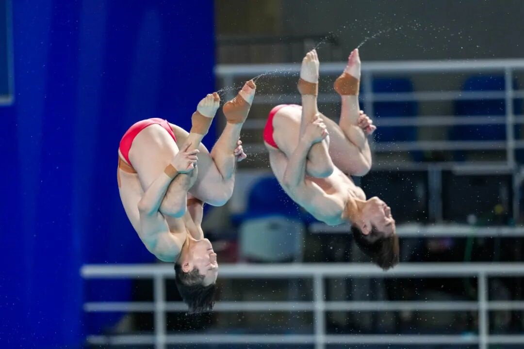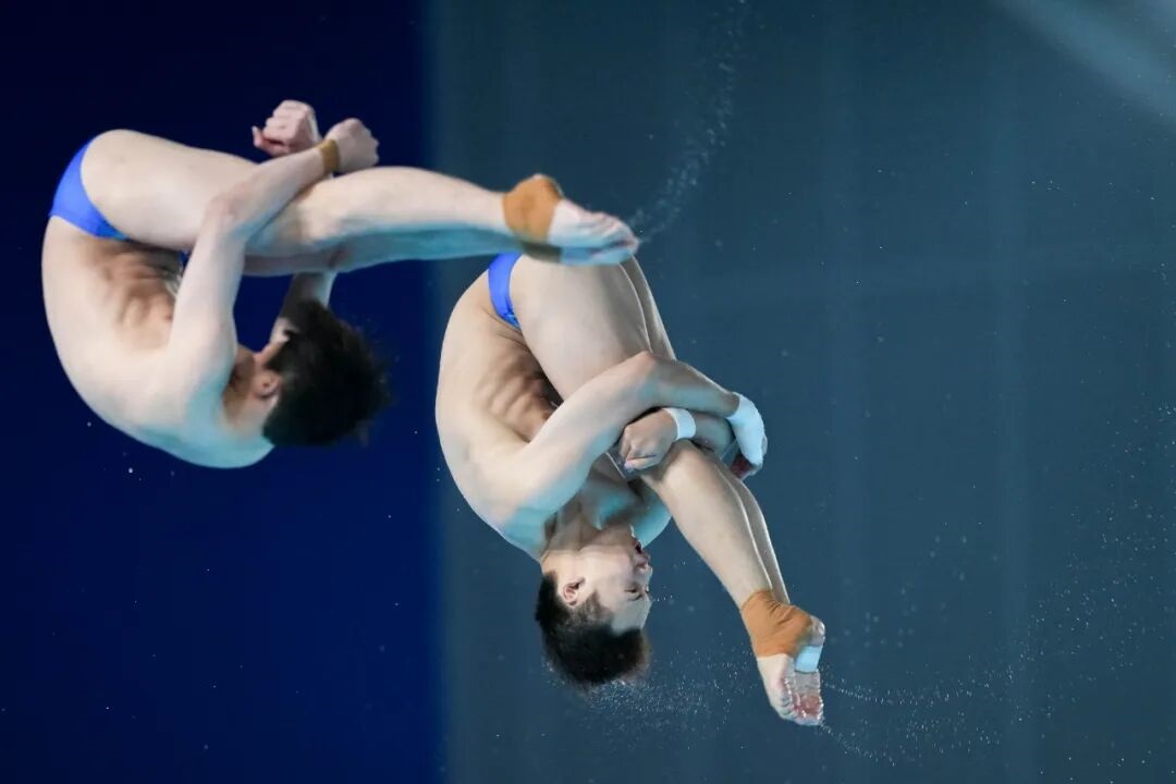 11月3日,湖北队组合王宗源/郑九源在男子双人3米跳板比赛中。