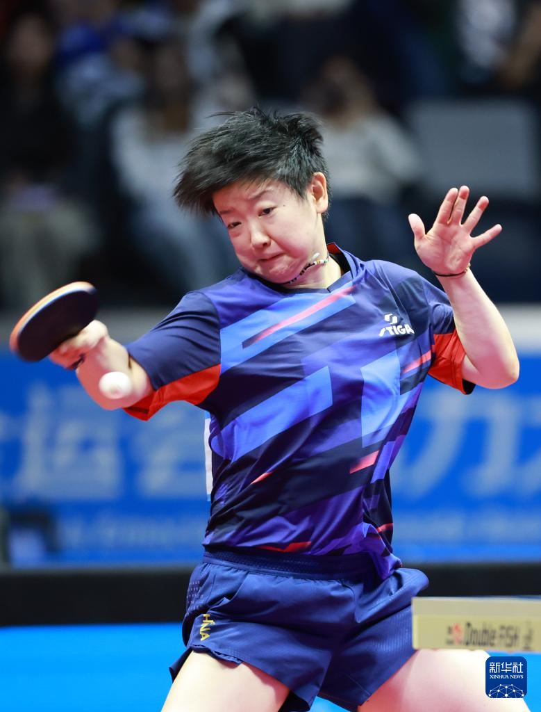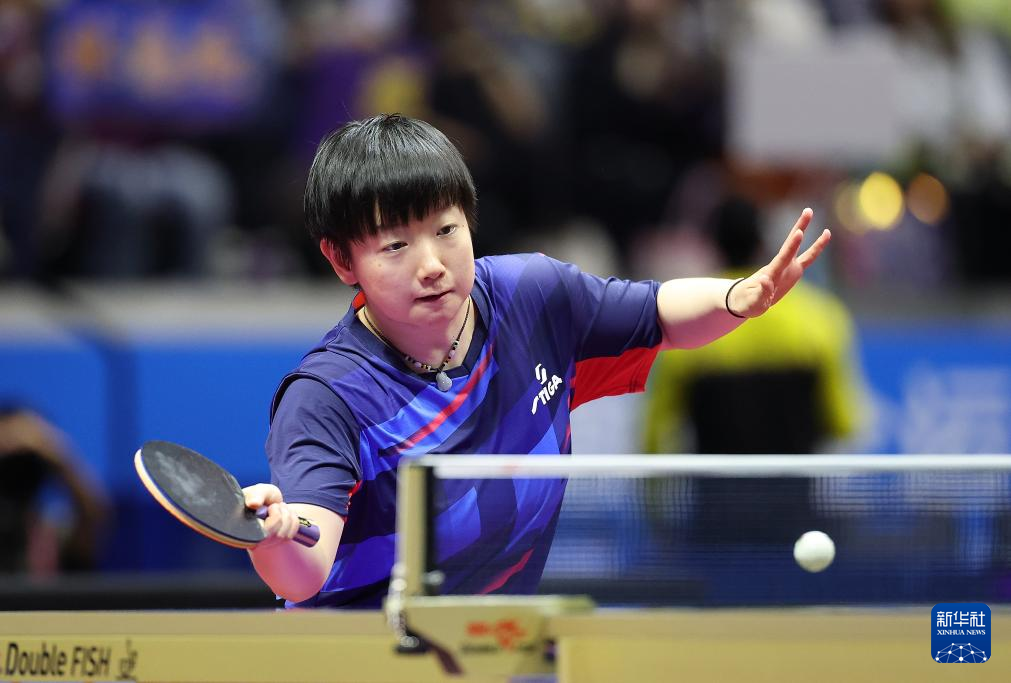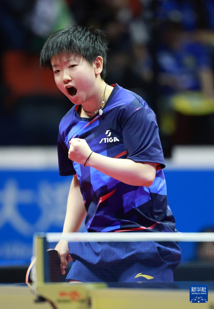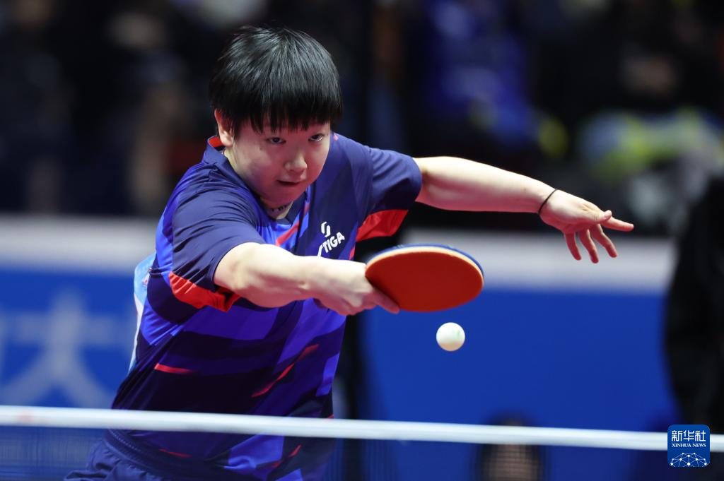11月12日,在澳门举行的第十五届全国运动会乒乓球女子单打八分之一决赛中,河北队选手孙颖莎4比1战胜山东队选手王晓彤,晋级八强。