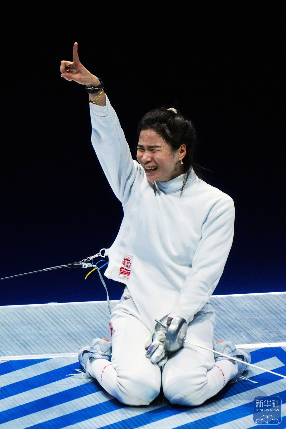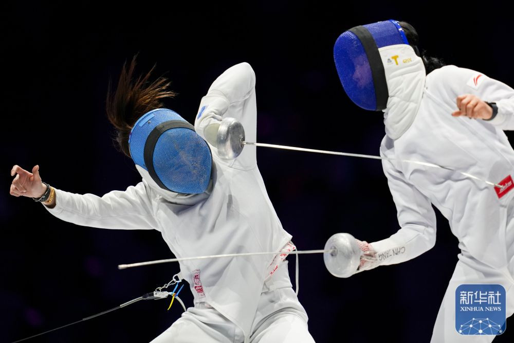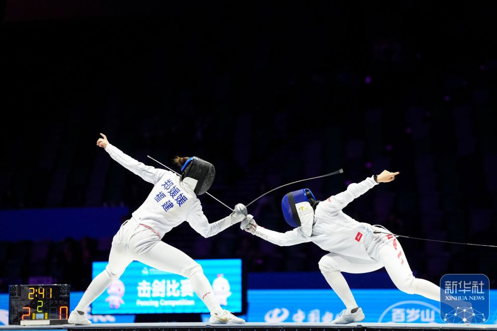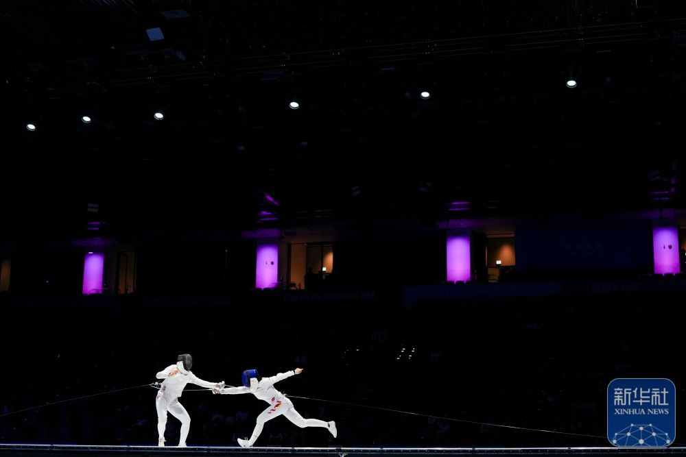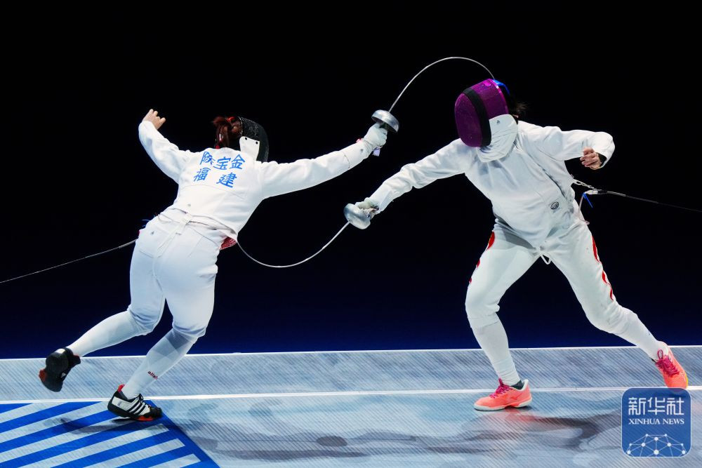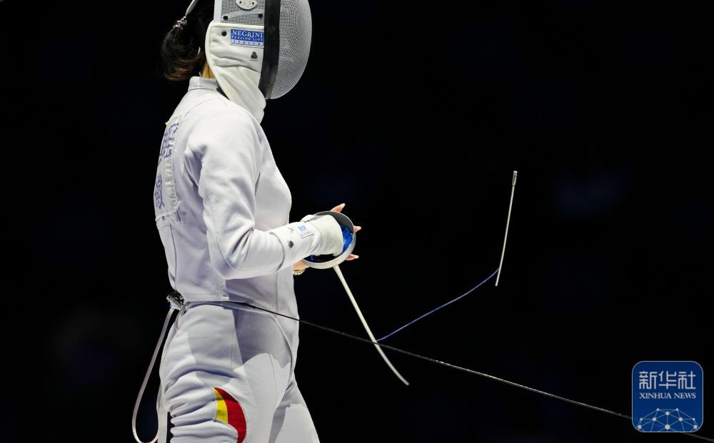 ↑安徽队选手倪琪瑶的剑在比赛中折断。 新华社记者 吴鲁 摄