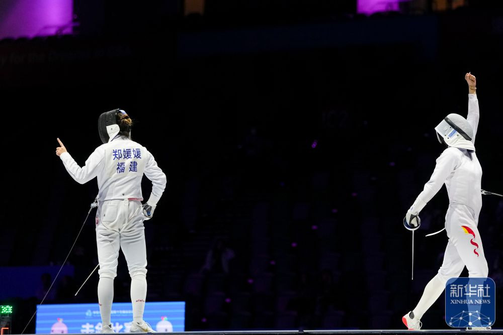 ↑福建队选手林声(左)和安徽队选手唐君瑶在比赛中。 新华社记者 吴鲁 摄