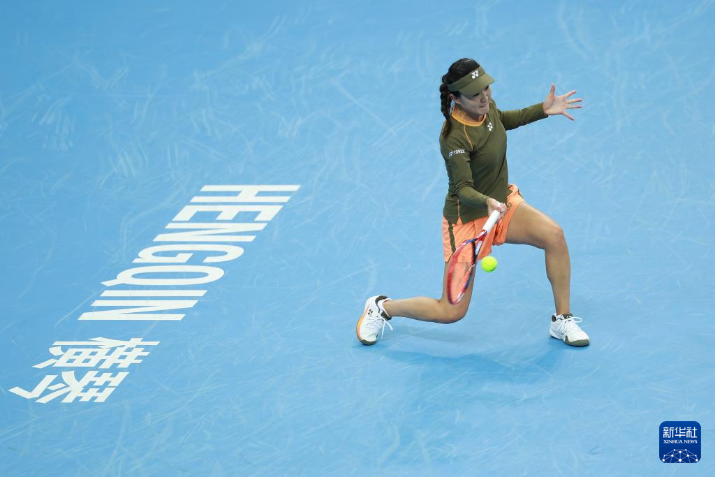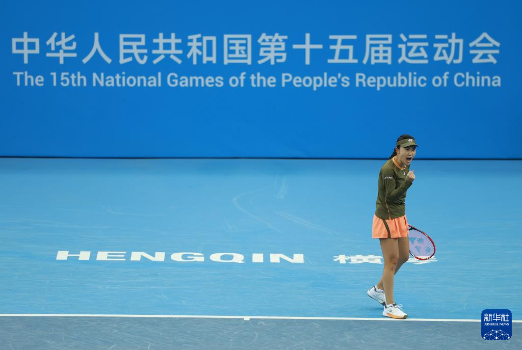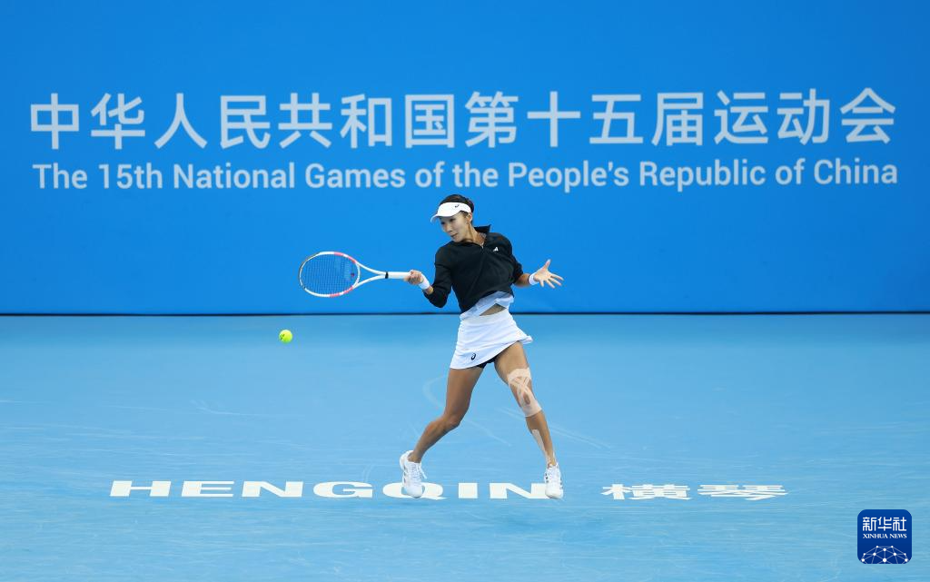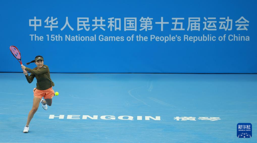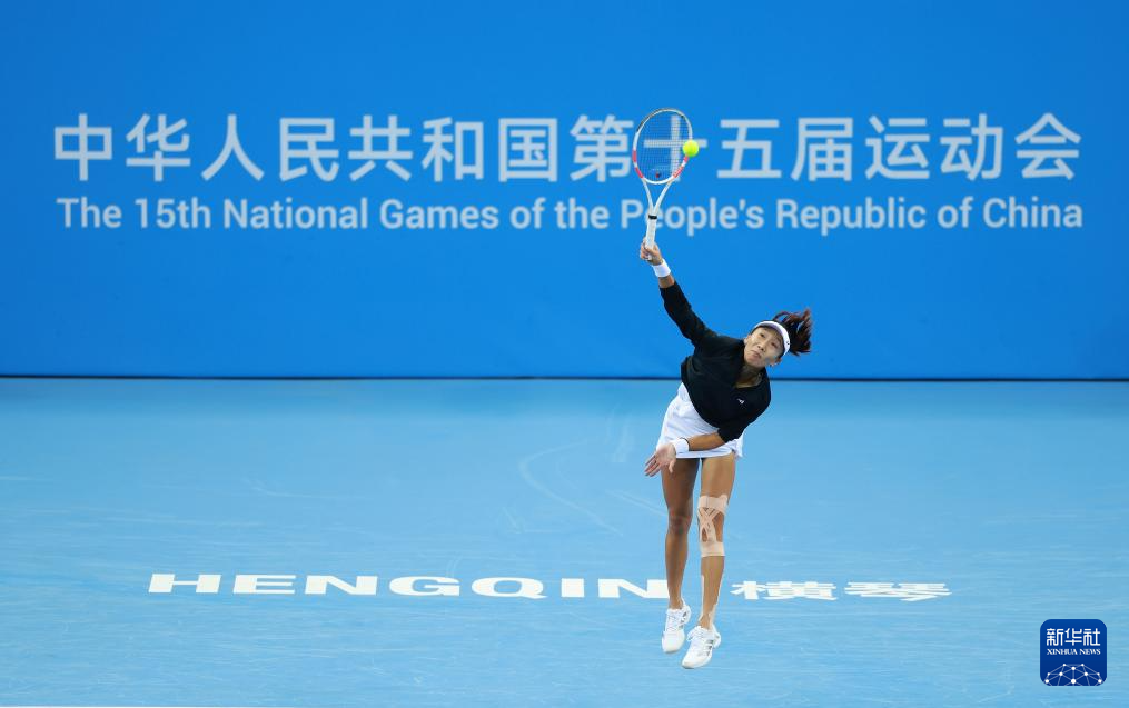 11月20日,在广东横琴举行的第十五届全国运动会网球项目女子单打决赛中,安徽队选手朱琳对阵北京队选手高馨妤。
