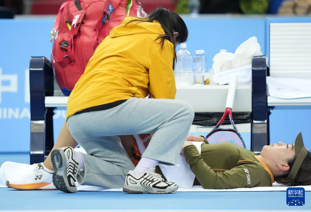 11月20日,安徽队选手朱琳在比赛暂停阶段接受治疗。新华社记者 颜麟蕴 摄