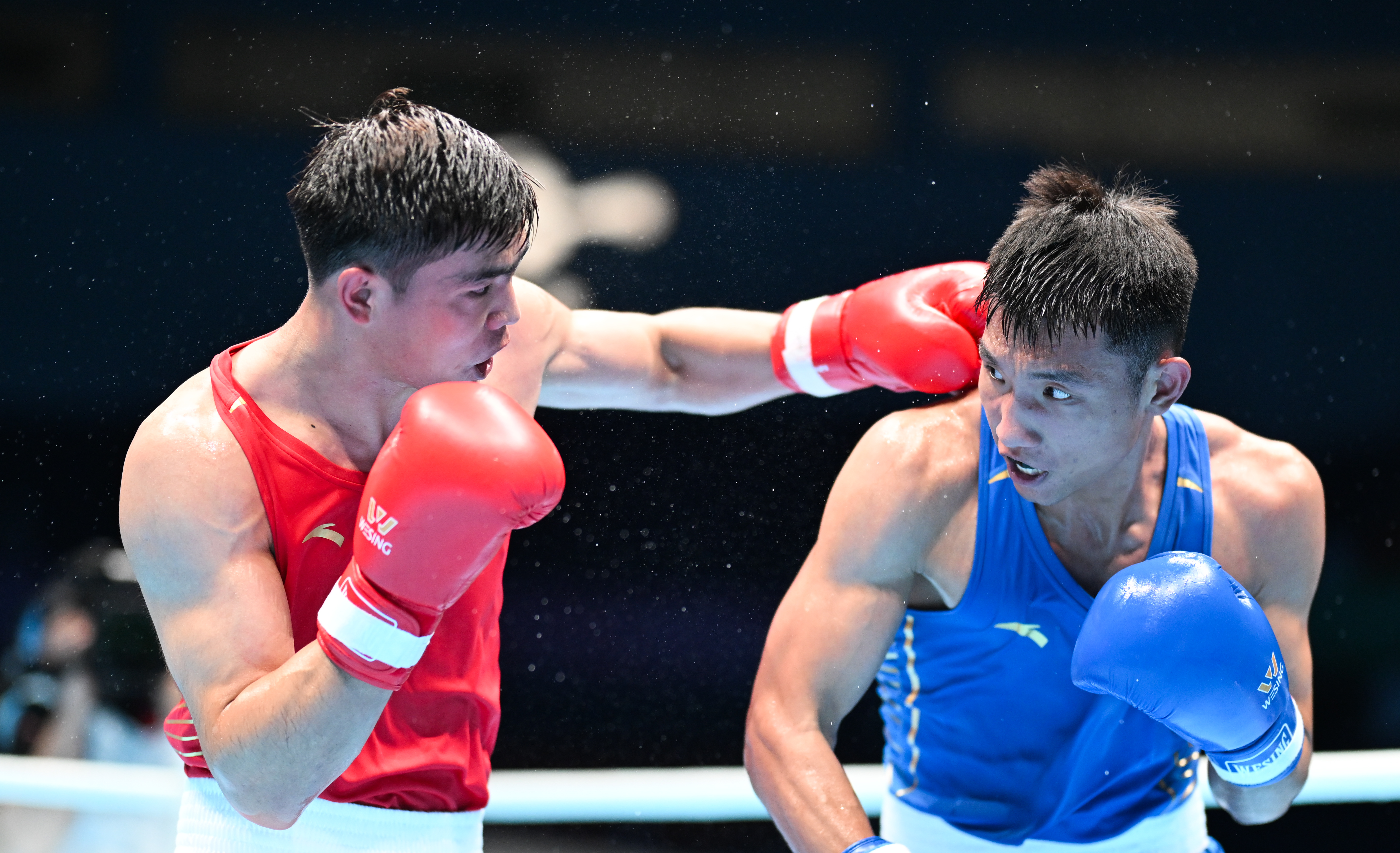 男子80公斤级八分之一决赛中,曾获杭州亚运会男子80公斤级冠军的新疆队运动员托合塔尔别克·唐拉提汗攻势凶猛,其对手煤矿体协队运动员孙兆祥在第三回合弃赛。