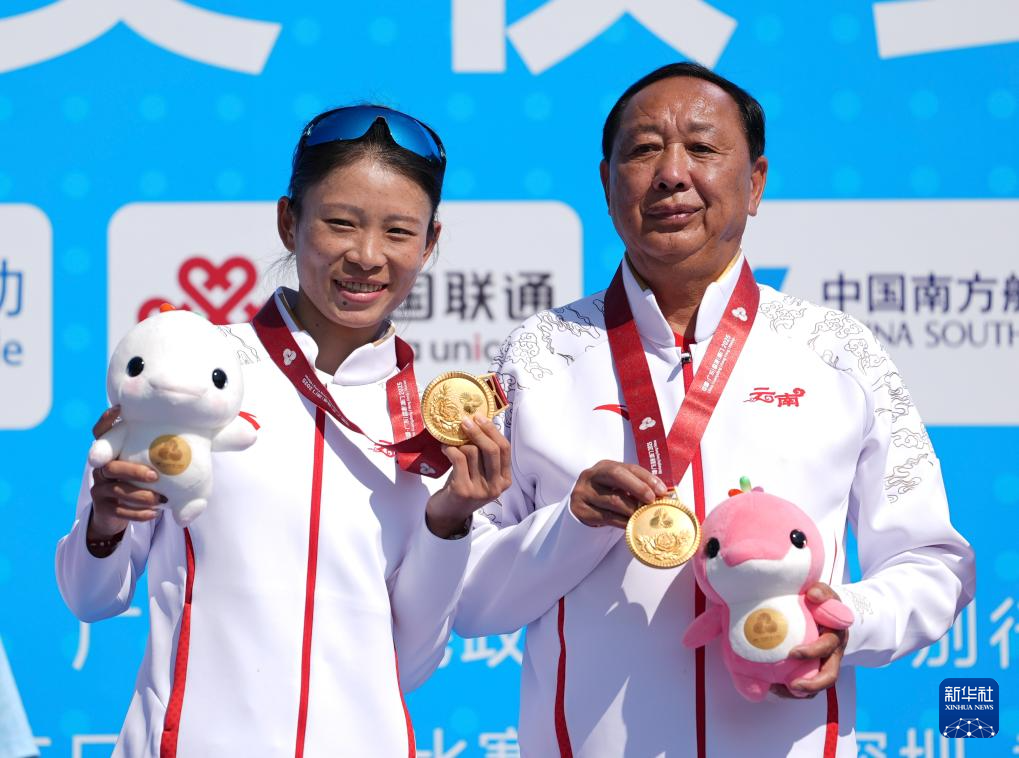 11月15日,冠军云南队选手张德顺(左)和她的教练员在颁奖仪式上。江汉 摄