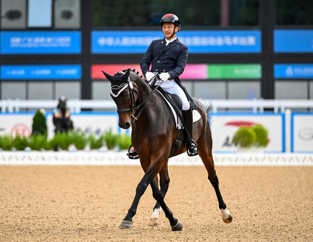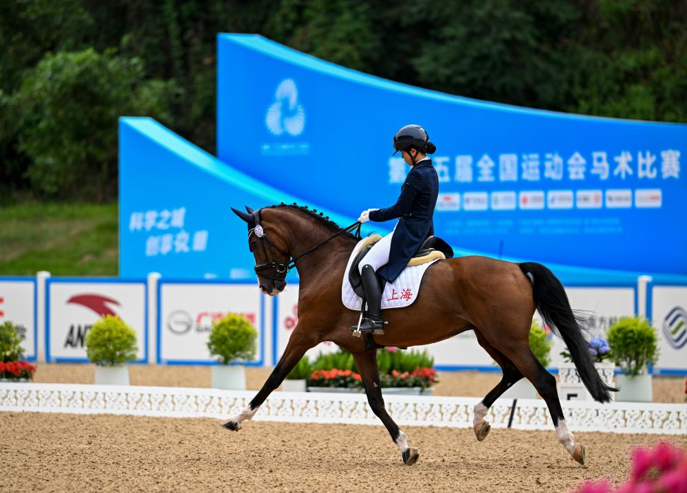 11月12日,第十五届全国运动会马术项目盛装舞步个人赛决赛在深圳举行,38岁的新疆队选手刘涛以72.425分夺得金牌,17岁的上海队选手徐墨菲和52岁的广东队选手顾兵分别以69.520分和69.045分排名二、三位。