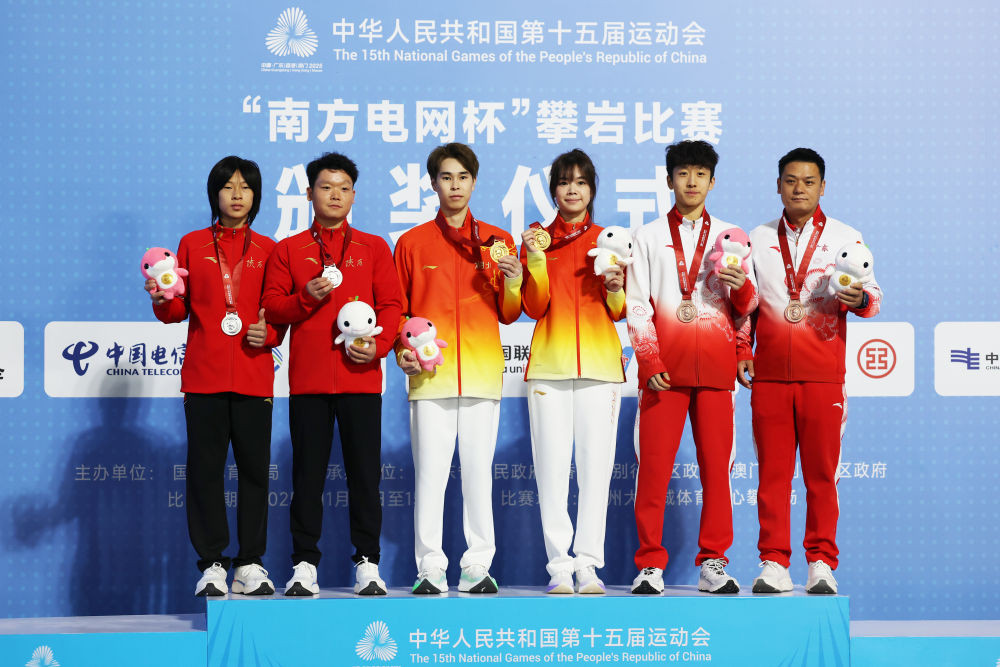 11月13日,第十五届全运会攀岩项目迎来首个金牌日,男、女难度金牌分别归属大赛经验更丰富的湖北队选手潘愚非和广东队选手张悦彤。两名首次参加全运会的青少年选手登上领奖台。