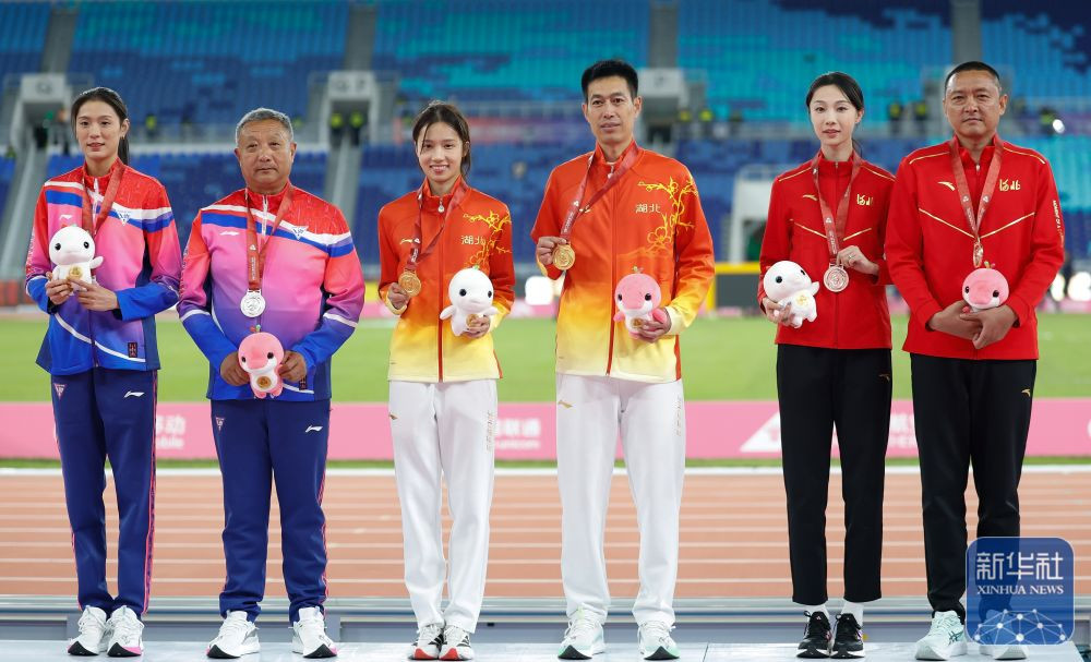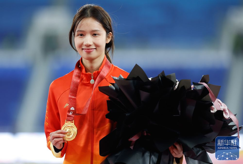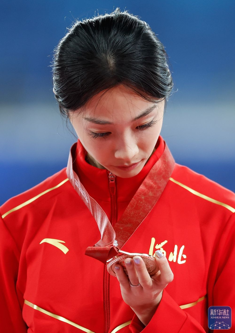 ↑获得冠军的湖北队选手邵雨琪在颁奖仪式上。 新华社记者 黄伟 摄