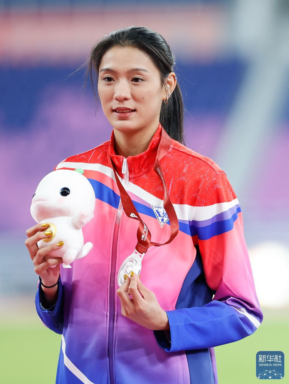 ↑获得亚军的上海队选手陆佳雯在颁奖仪式上。 新华社记者 黄伟 摄