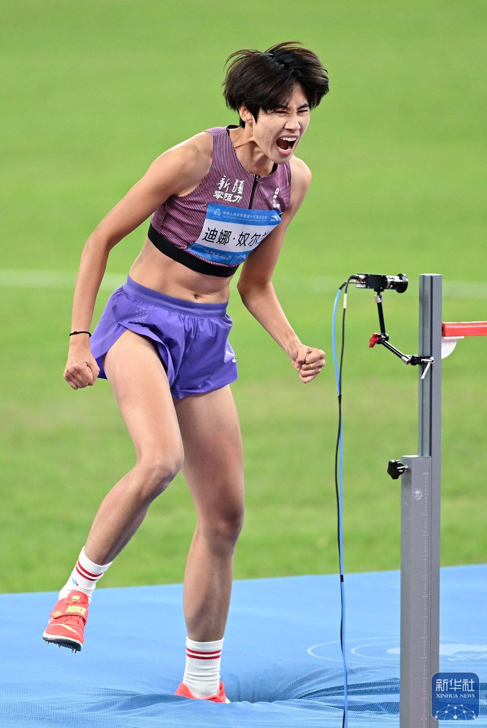 ↑新疆队选手迪娜·奴尔兰在比赛中。她位列第四名。 新华社记者 邓华 摄