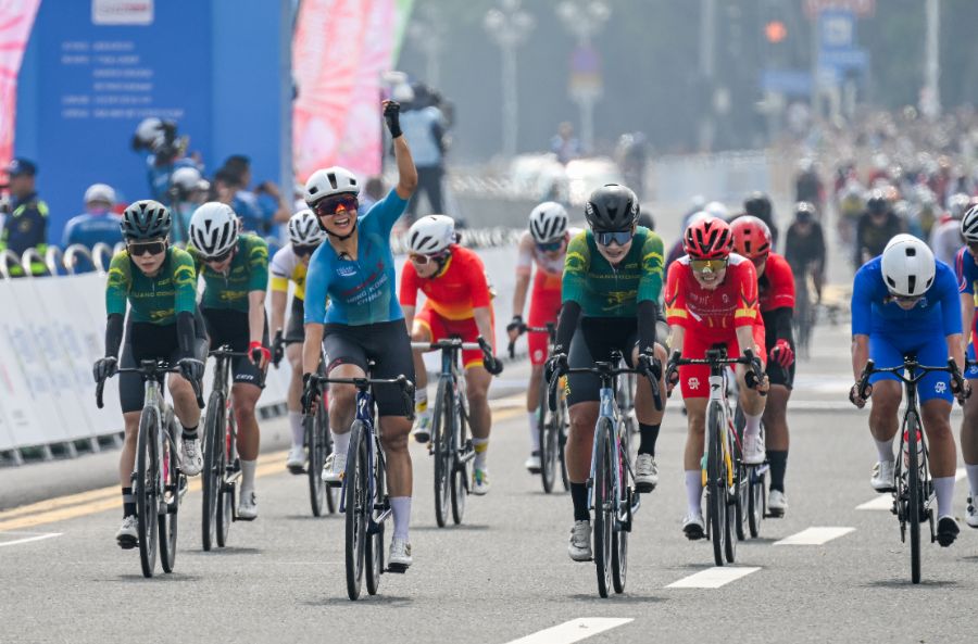 第十五届全国运动会公路自行车女子个人赛决赛。图源新华社。