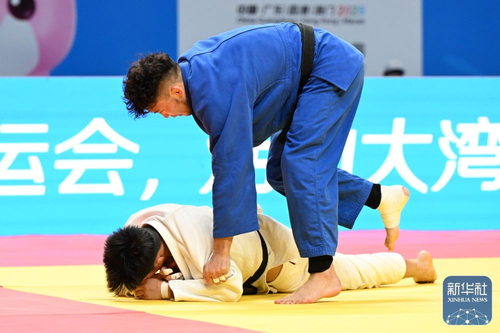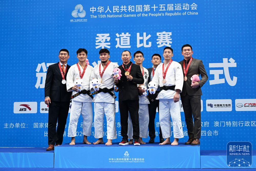 11月11日,第十五届全国运动会柔道项目男子73公斤级金牌赛和铜牌赛在肇庆举行。内蒙古队选手青达嘎获得冠军。