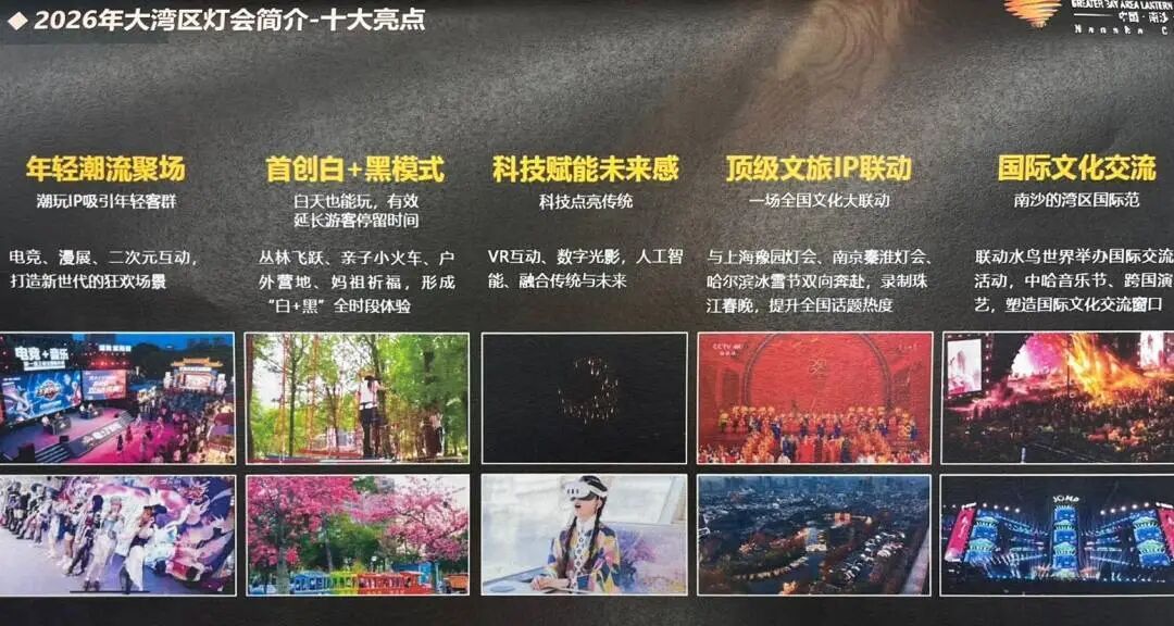 大湾区灯会将与上海豫园灯会、南京秦淮灯会、哈尔滨冰雪节等顶级IP联动,双向奔赴,录制珠江春晚,将灯会打造为世界级地标性文旅IP。