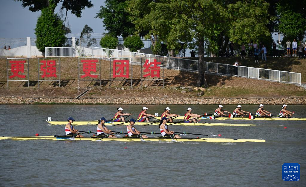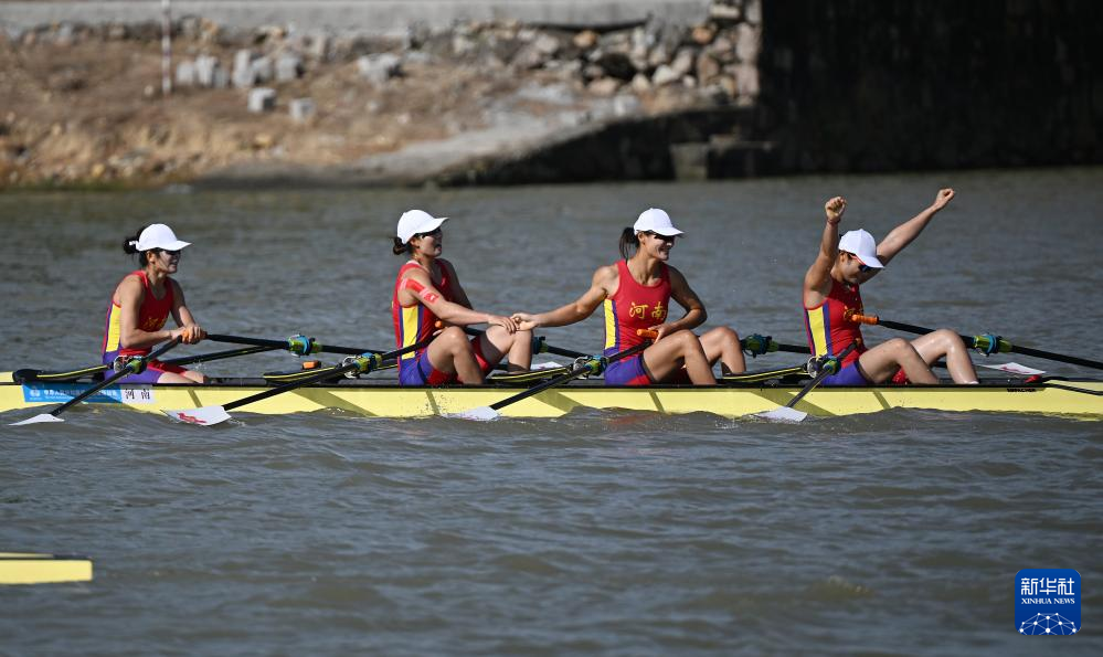 11月10日,第十五届全国运动会赛艇项目女子四人双桨决赛在广州举行。